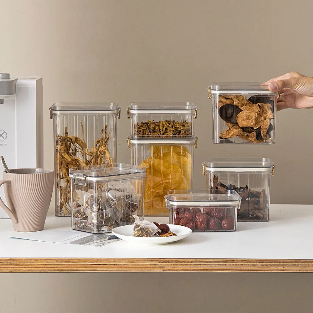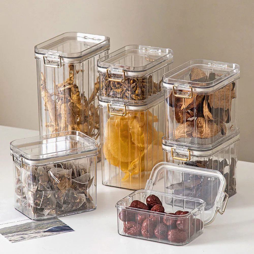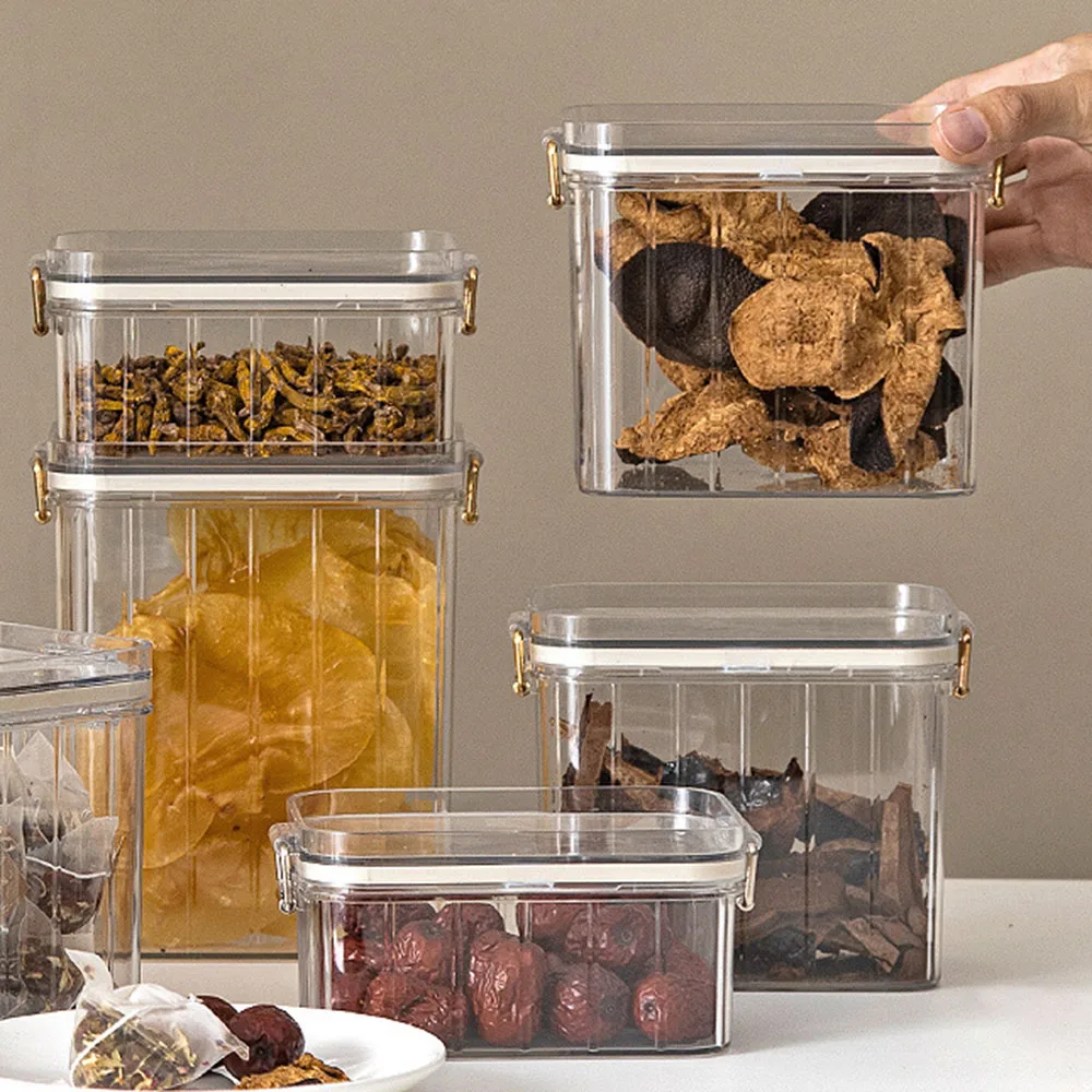 Contenedores de plástico transparente para almacenamiento de alimentos para mascotas con tapas, tarros herméticos para perros y gatos, golosinas de alimentos secos, organizadores para el hogar, suministros para mascotas