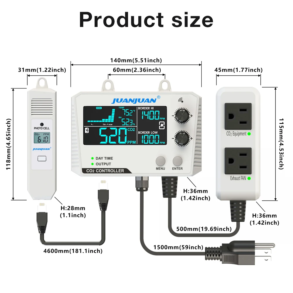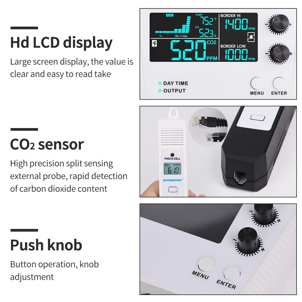 Controlador de CO2 de doble canal, Monitor de calidad del aire de 0 ~ 5000 ppm, Control de concentración de CO2, regulador de dióxido de carbono para invernadero