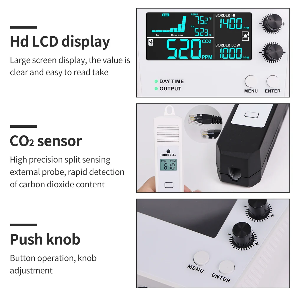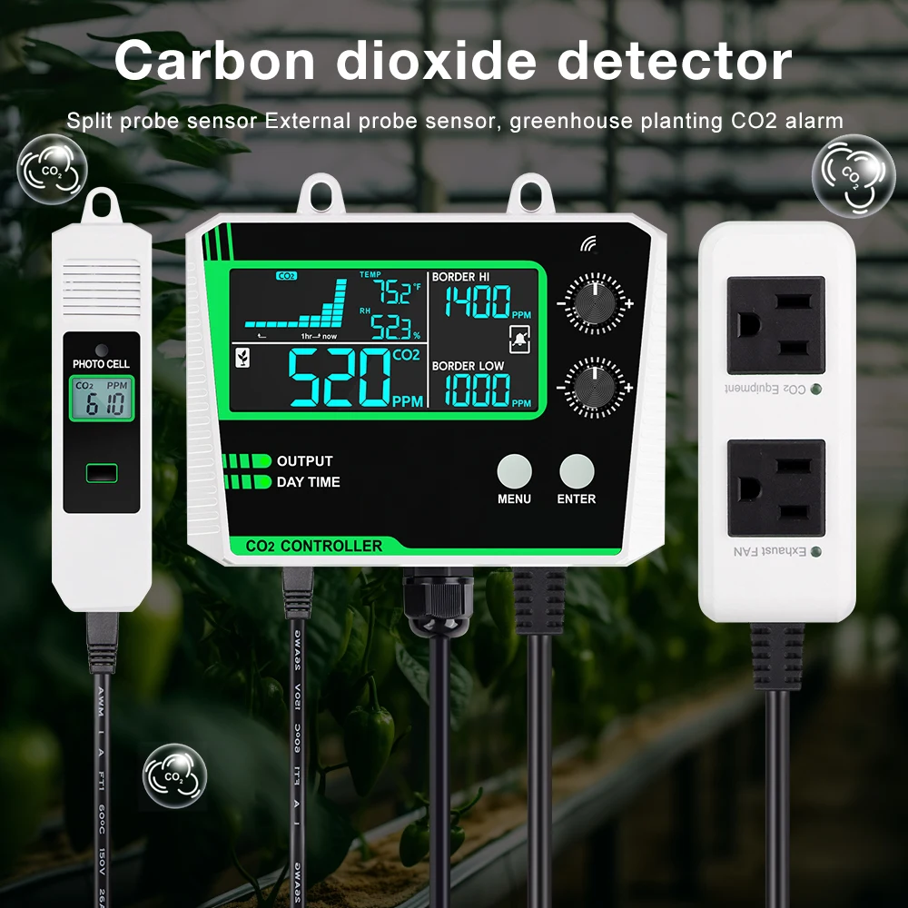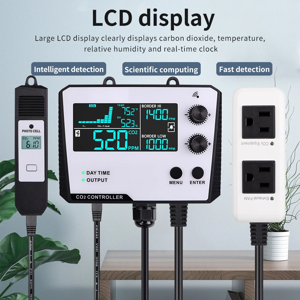 Controlador Digital de dióxido de carbono, controlador de CO2, detección de 0-5000ppm, Monitor de CO2, relé, probador de concentración de CO2 para invernadero