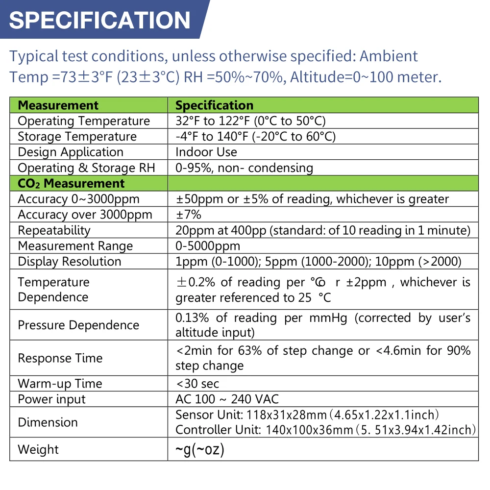 *Sensor de CO2 NDlR de doble canal/único y baja deriva para estabilidad a largo plazo.