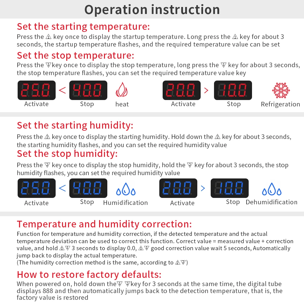 Controlador Digital de temperatura y humedad de 220V, termostato de calefacción eléctrica con pantalla LED Dual, regulador de incubadora de huevos y humedad