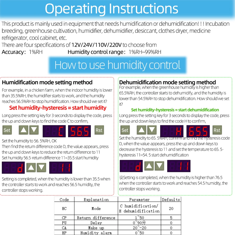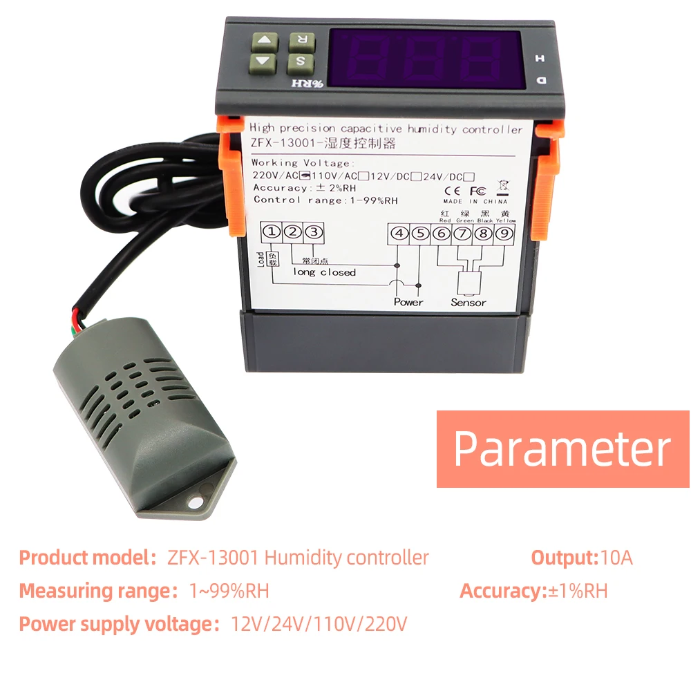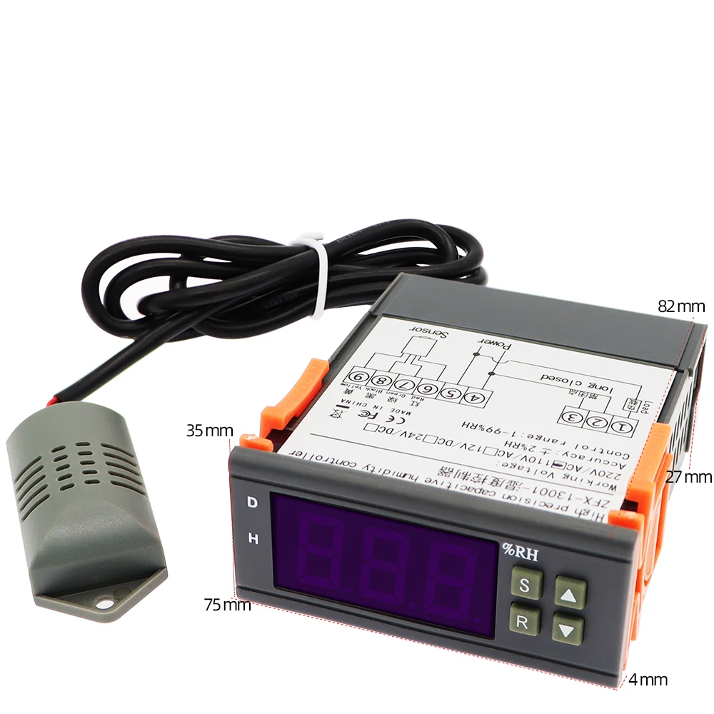 Controlador de humedad Digital ZFX-13001 1% ~ 99% RH controlador higrómetro 220V 10A higrómetro humidistato PU protección contra retrasos