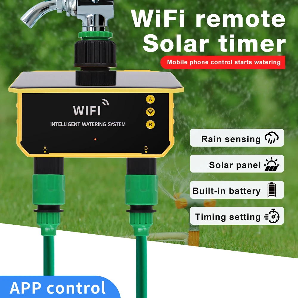 Controlador de sincronización Solar WiFi, temporizador de riego inteligente, sistema de controlador de riego automático de 1/2 zonas para césped y jardín