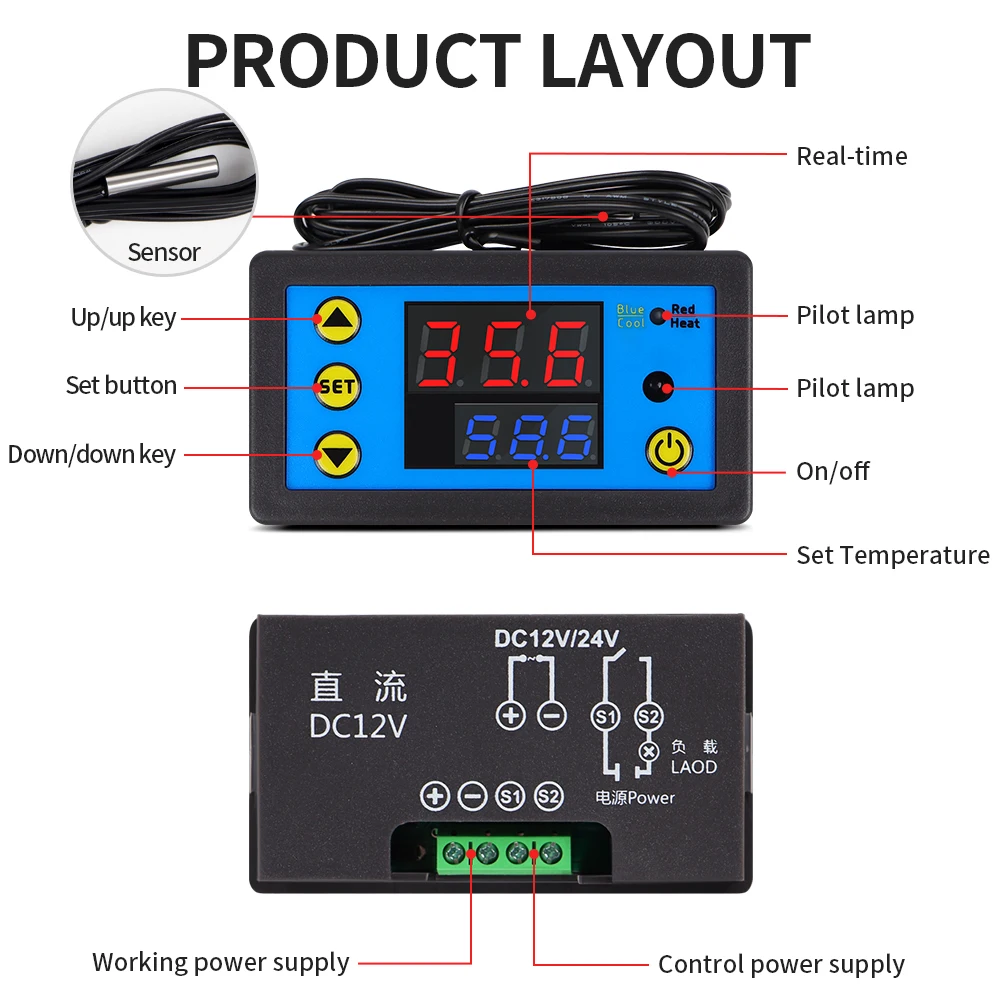 Controlador de temperatura del congelador del microordenador del control remoto del termostato digital de DC12V con sensor NTC