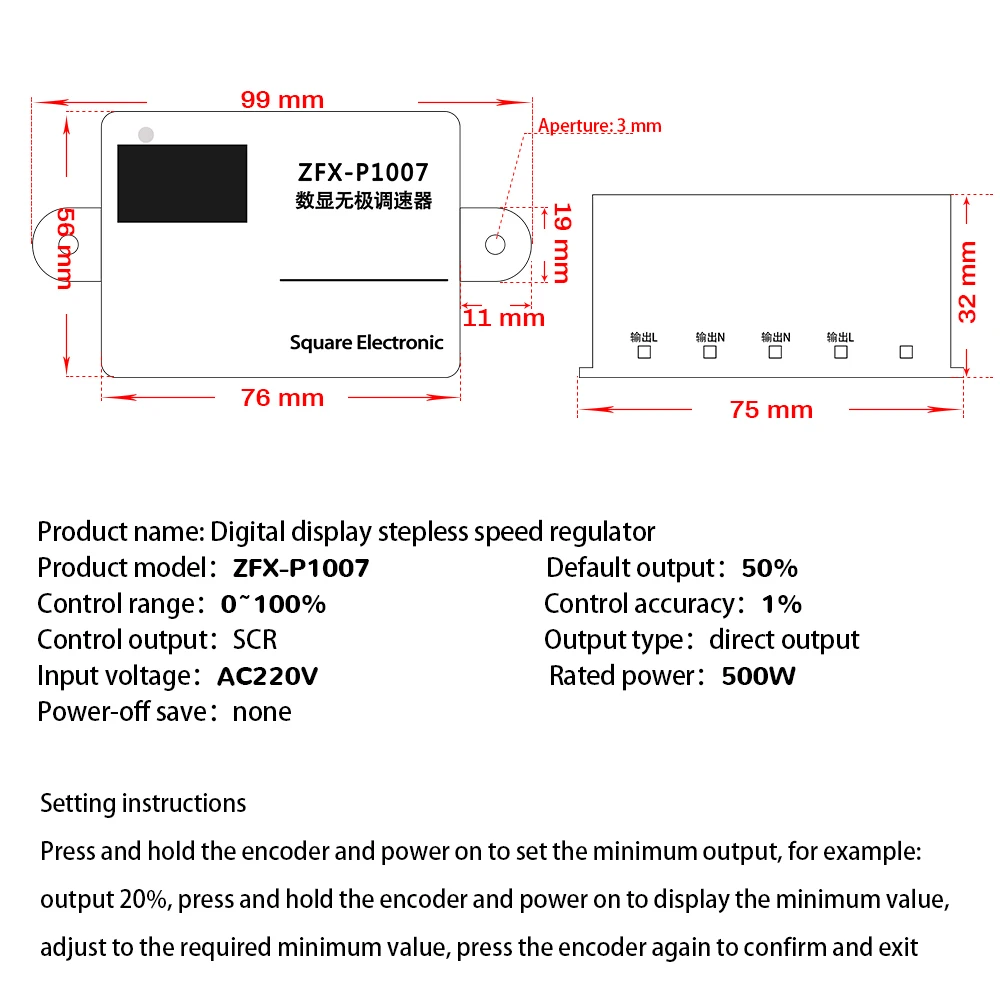 Controlador de velocidad ZFX-P1007, resistente al agua, 500W, regulador de velocidad infinito Digital, regulador de velocidad continuo, interruptor regulador de Control de 220V