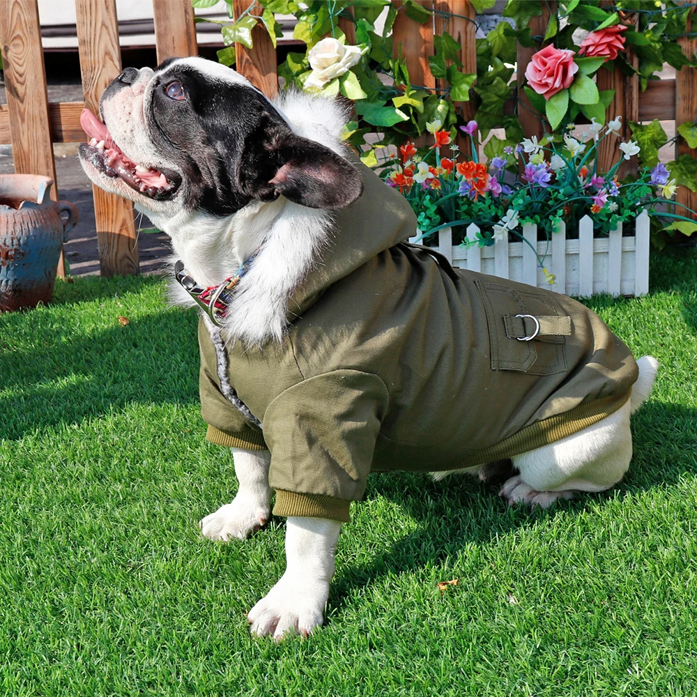 Chaqueta para perro, abrigo de cuero fresco, ropa de Bulldog Francés, abrigos, ropa cálida de invierno para mascotas, traje para perros pequeños y medianos, negro y rojo