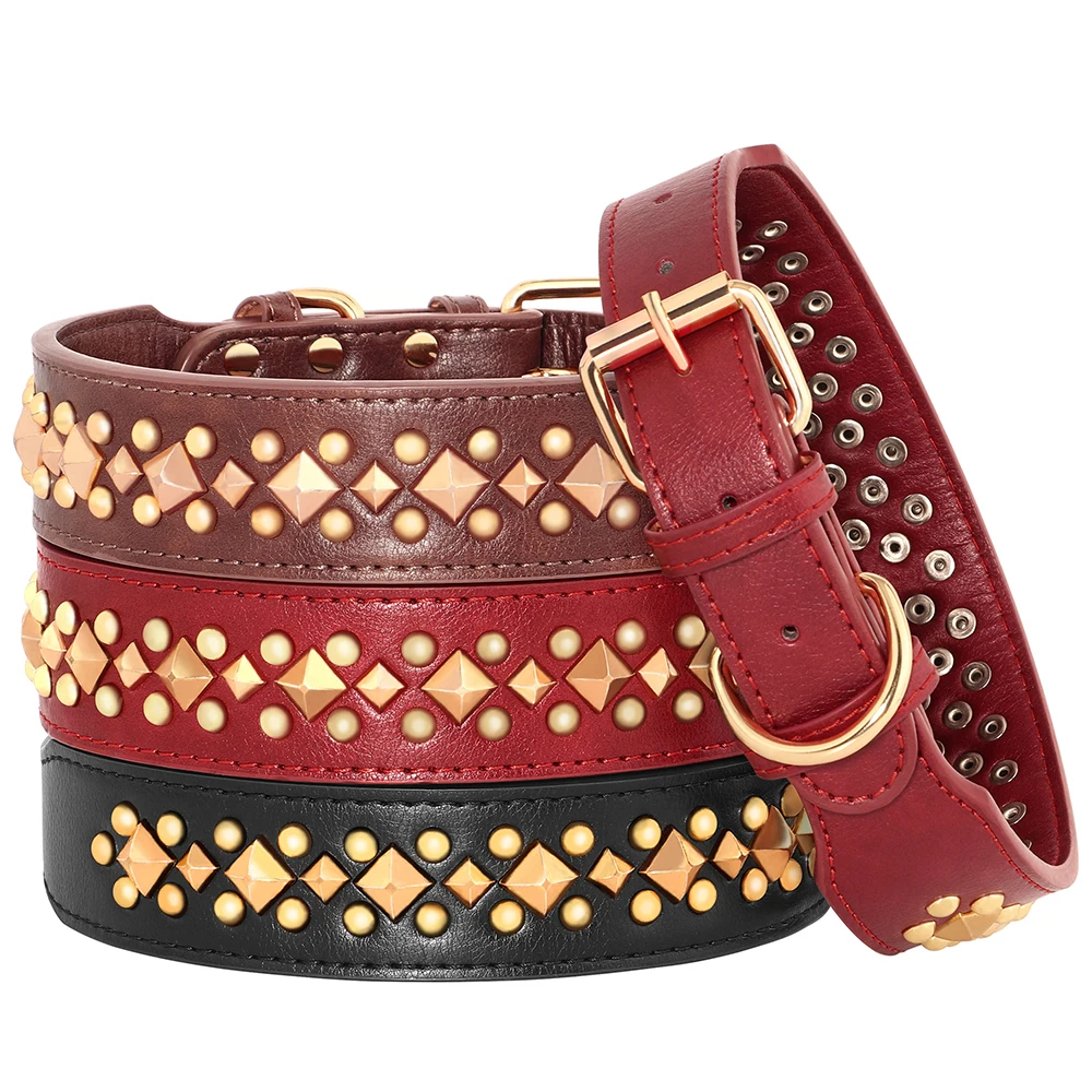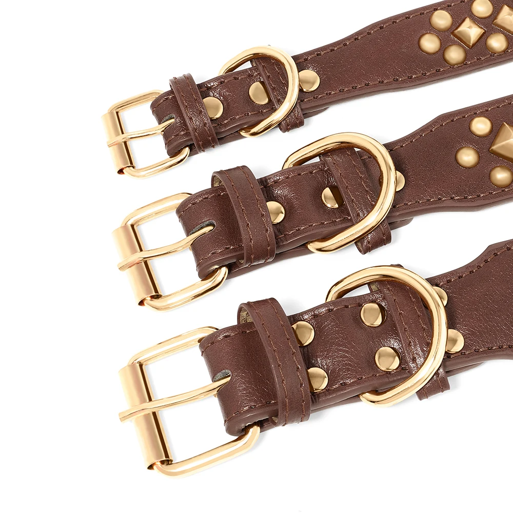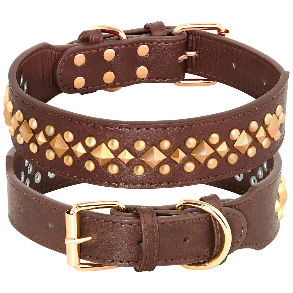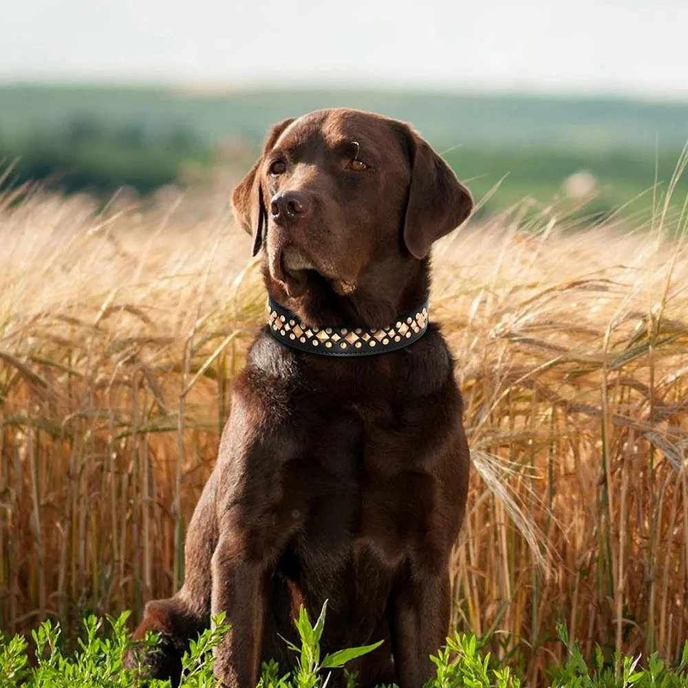 Collares de cuero con tachuelas para perros, collar de perro grande ajustable Pitbull Bulldog para perros pequeños, medianos y grandes, Bóxer, LabradorMaterial: cuero