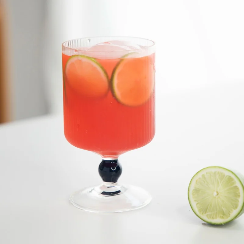 Hecho a mano resistente al calor a rayas licor alto copa de champán vino caliente taza de jugo té de la leche taza media