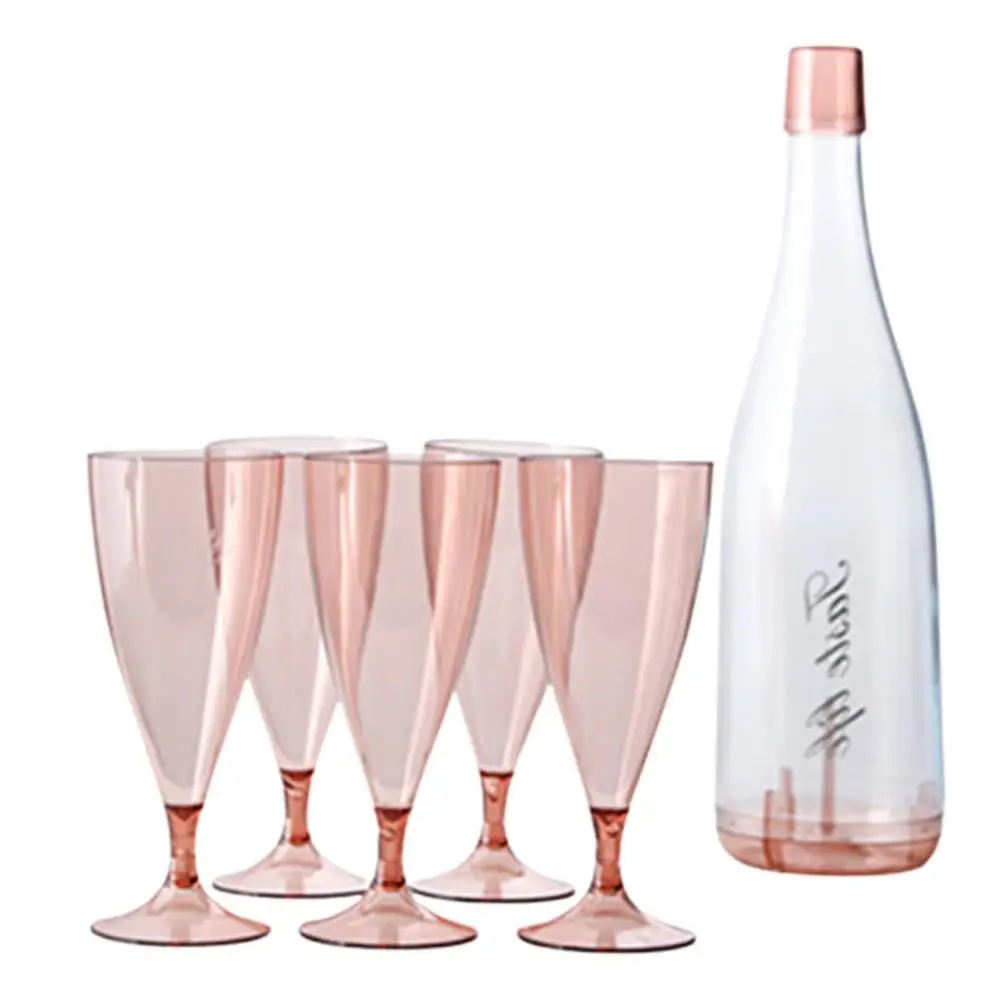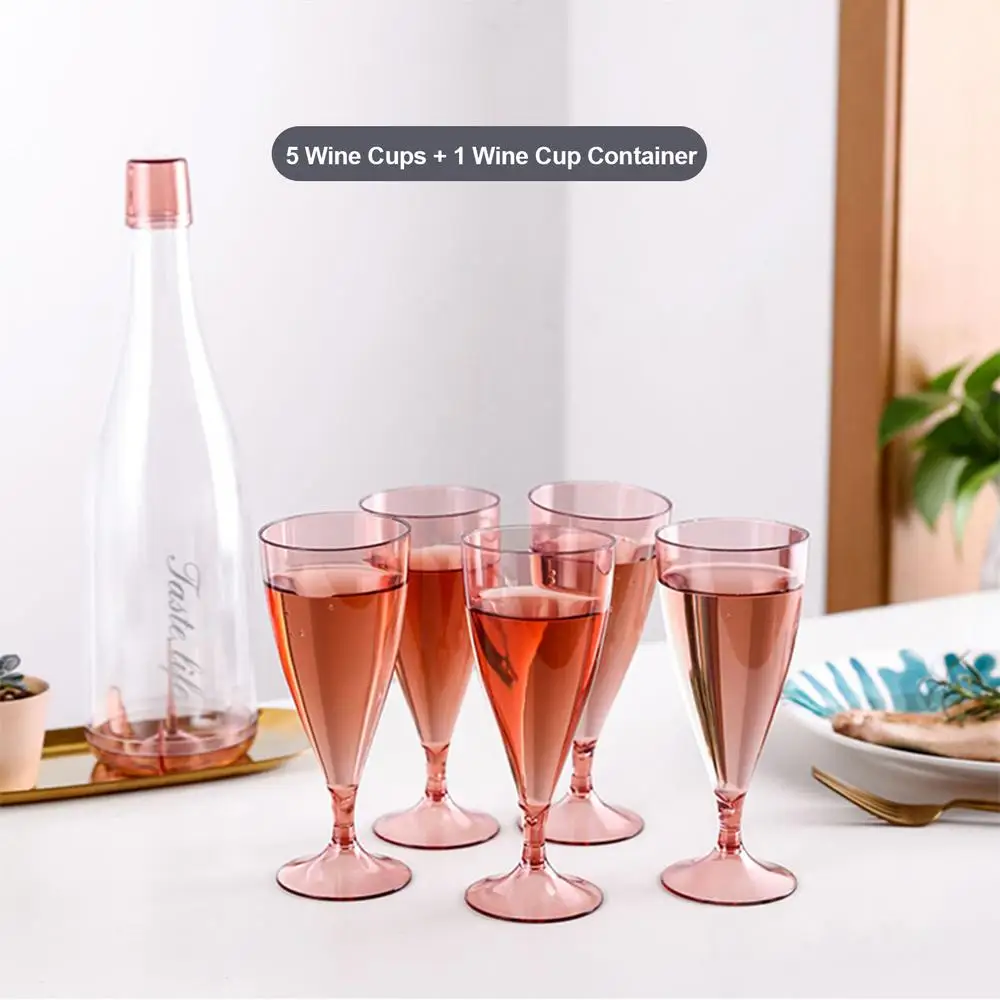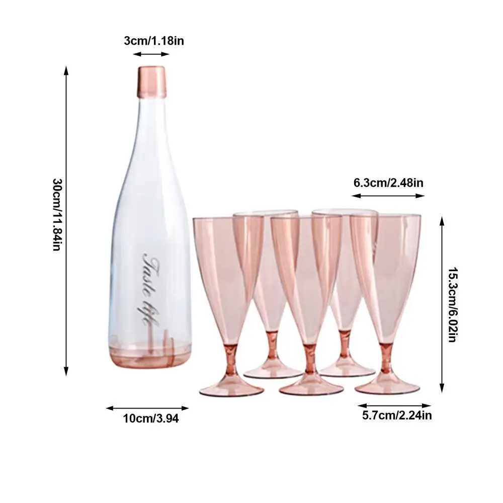 1. 【Diseño innovador】: Las flautas de champán de diseño innovador son fáciles de limpiar, ligeras y fáciles de almacenar, porque viene con una botella de almacenamiento, por lo que parece una botella de vino en el exterior, Y cuando lo abre, en realidad hay 5 copas de vino para que las use.