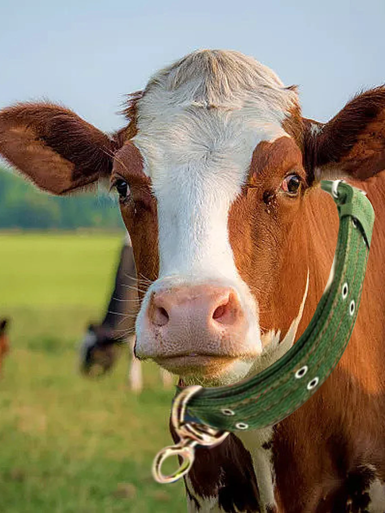 Parece fuerte. Hay algunos hilos preocupadamente sueltos, pero en general estoy contento con este collar de vaca.
