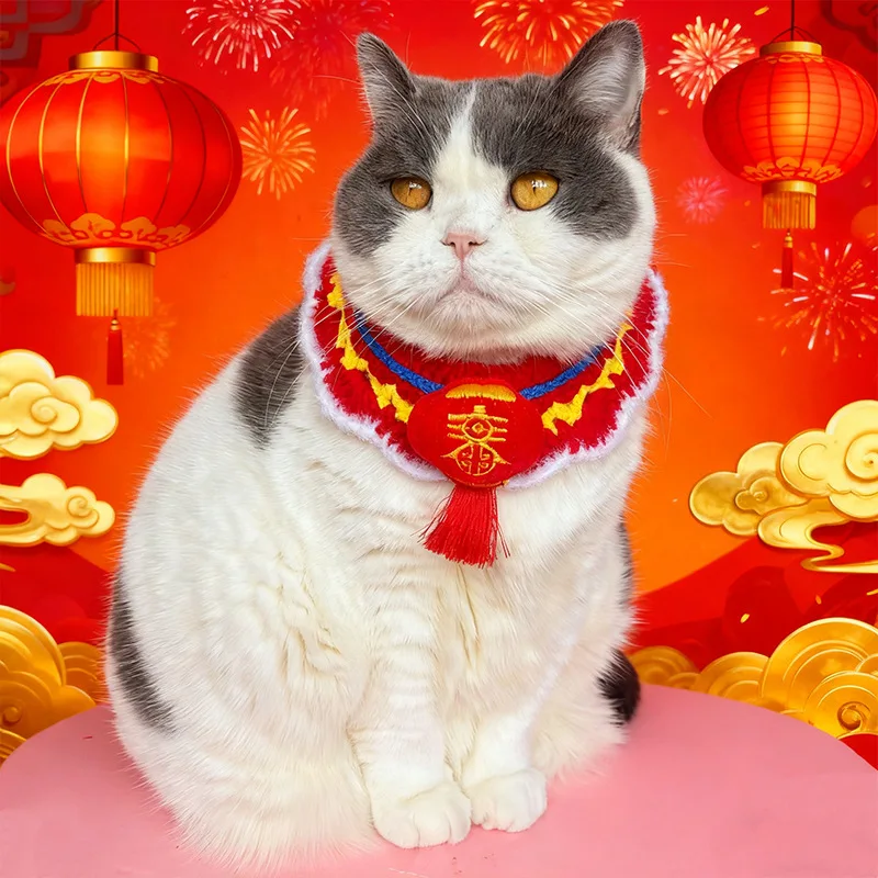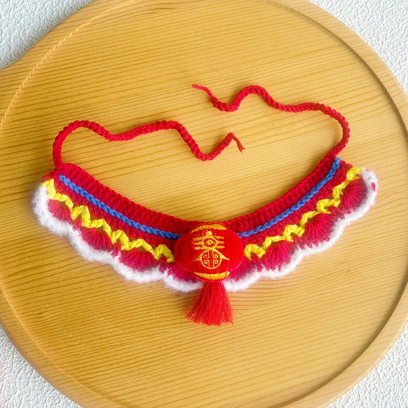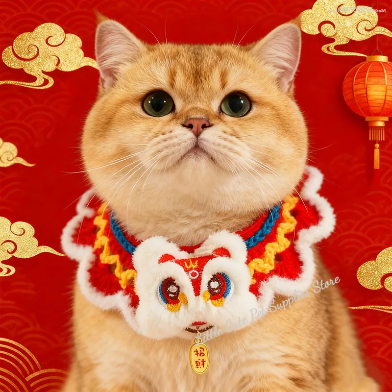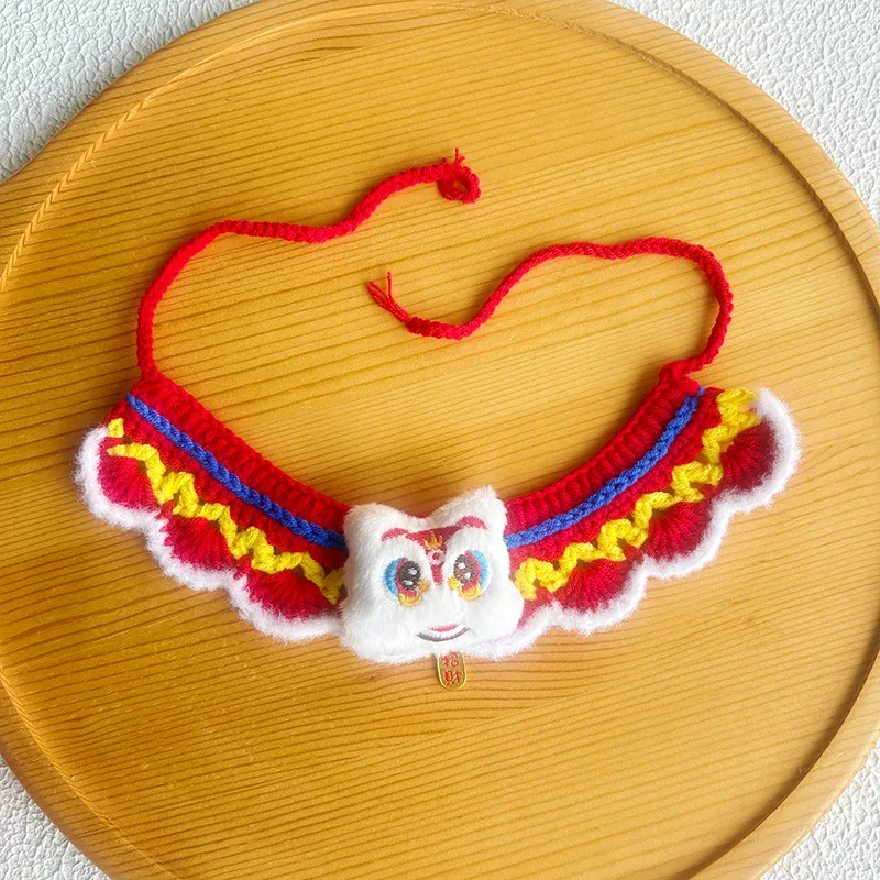 Corbata tejida hecha a mano para gatos, accesorio ajustable para mascotas, diseño de danza del león chino, protección mágica, accesorio de moda para gatos