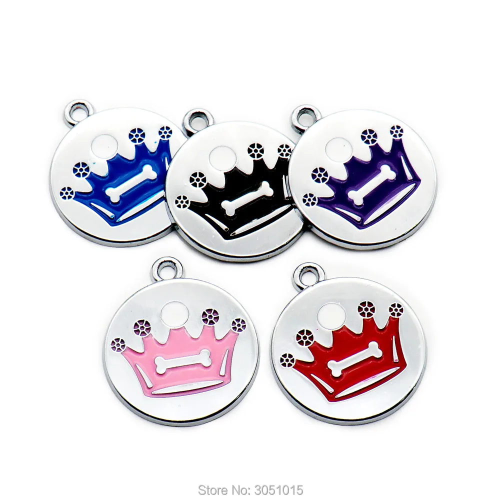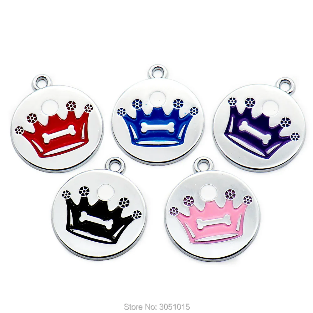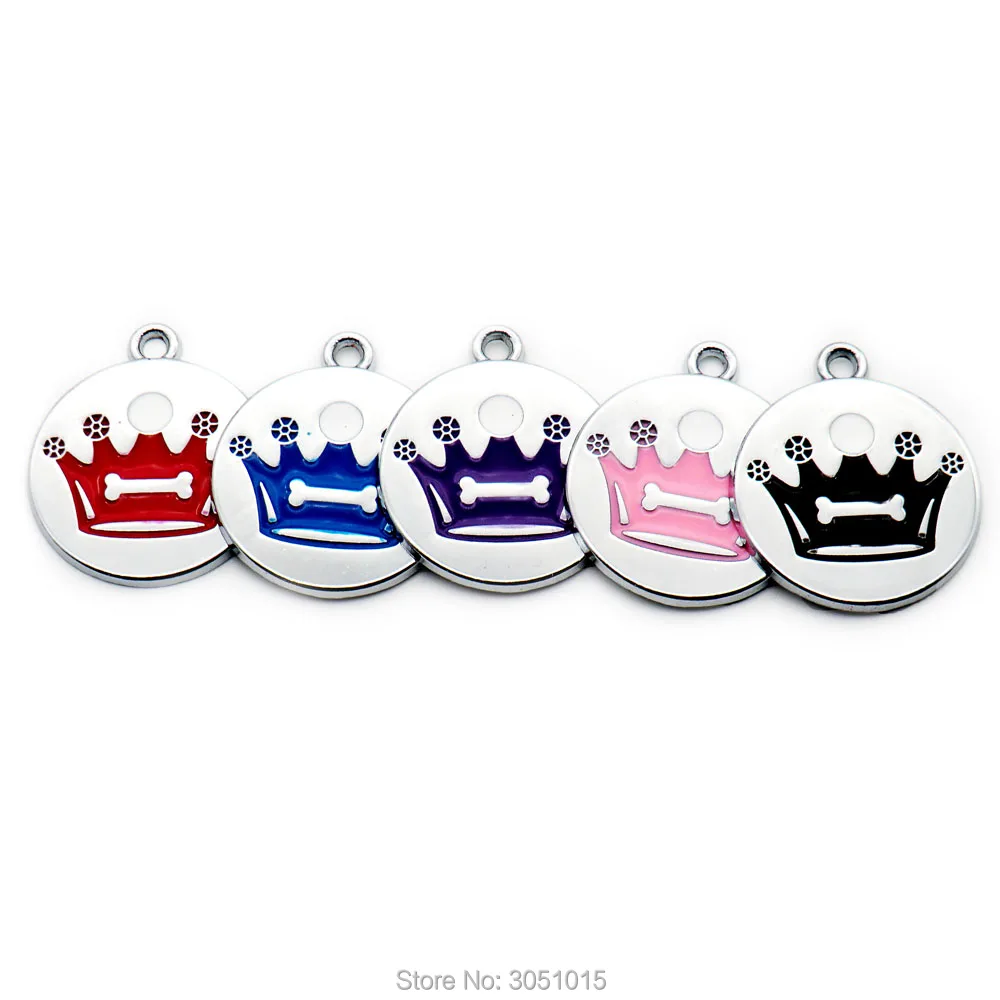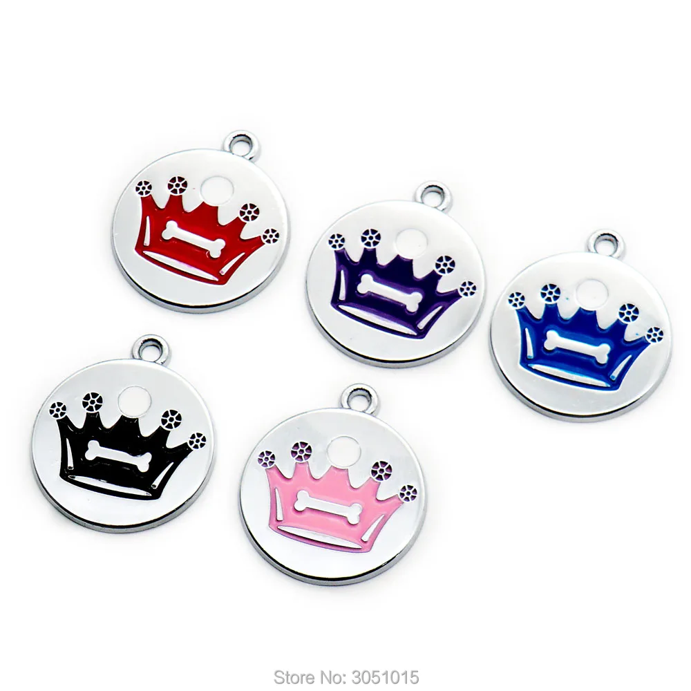 Venta al por mayor de 100 piezas, corona, etiqueta para perro, accesorios para Collar de perro, etiqueta de identificación para cachorro de gato, colgante de nombre de pata de acero inoxidable antipérdida