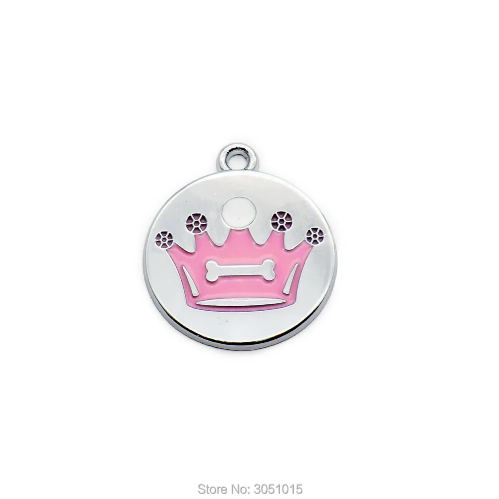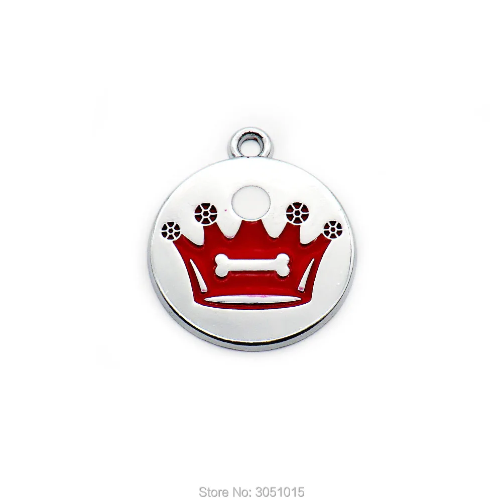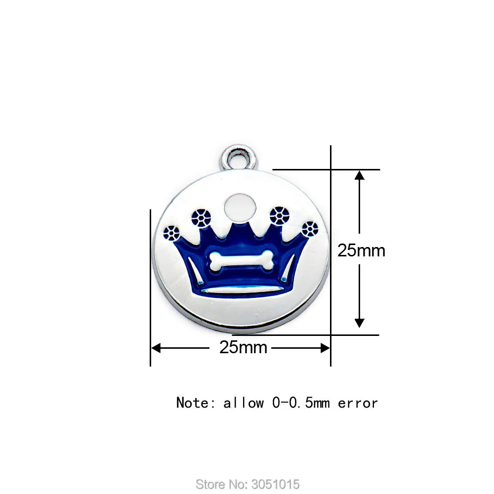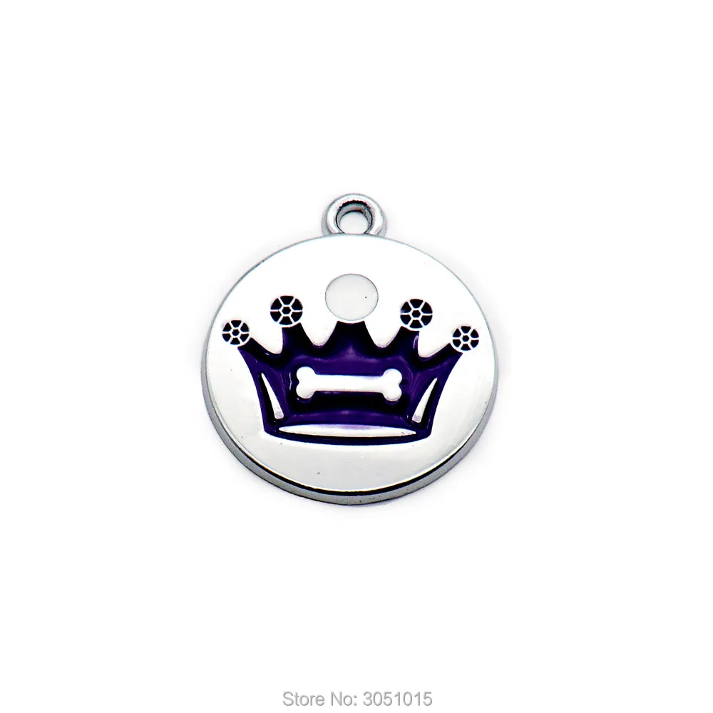 Venta al por mayor de 100 piezas, corona, etiqueta para perro, accesorios para Collar de perro, etiqueta de identificación para cachorro de gato, colgante de nombre de pata de acero inoxidable antipérdida