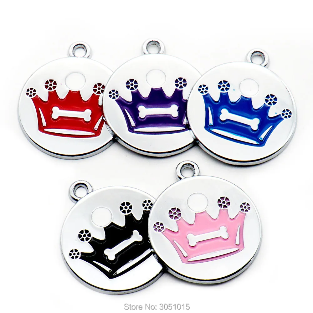 Venta al por mayor de 100 piezas, corona, etiqueta para perro, accesorios para Collar de perro, etiqueta de identificación para cachorro de gato, colgante de nombre de pata de acero inoxidable antipérdida
