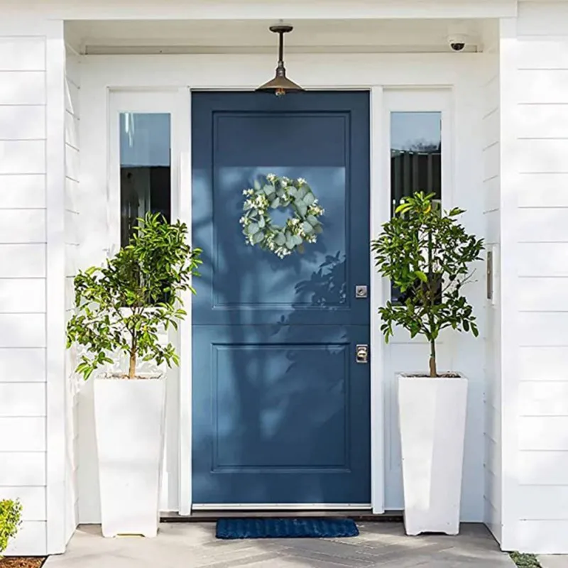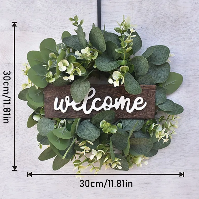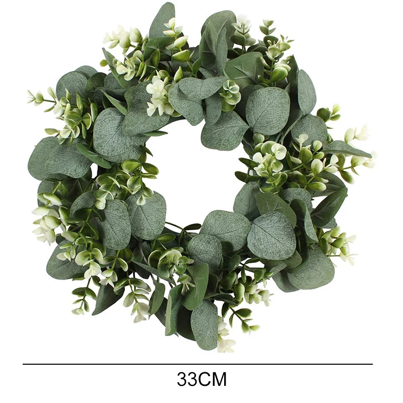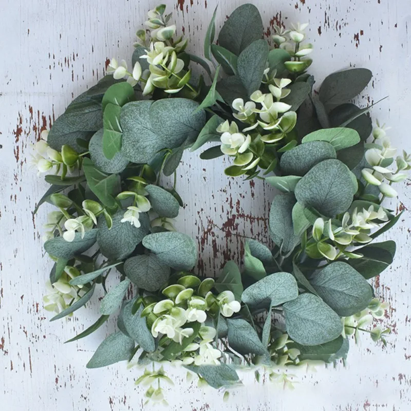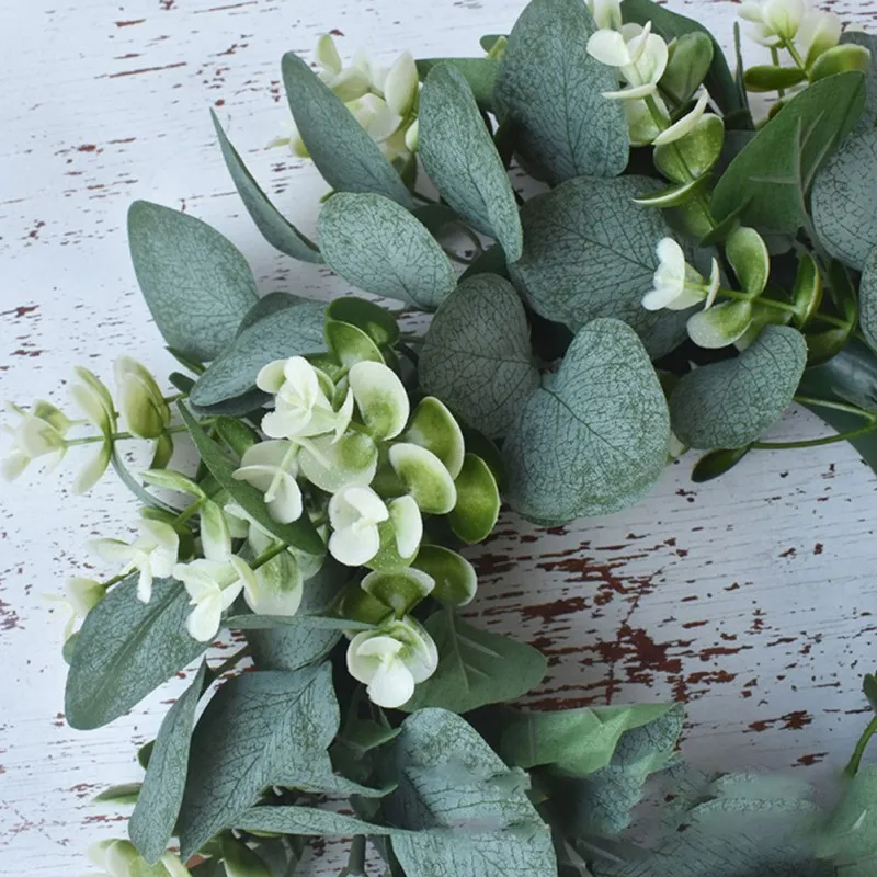 Corona de eucalipto de flores artificiales para puerta Delantera, decoración de casa, porche, granja, Acción de Gracias, decoraciones navideñas, interiores y exteriores