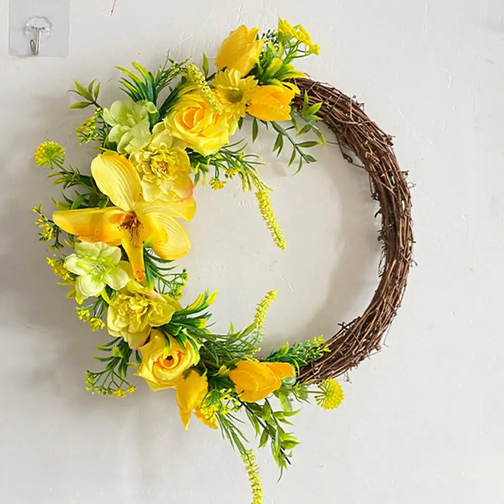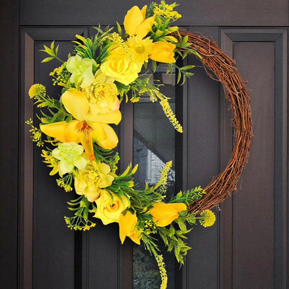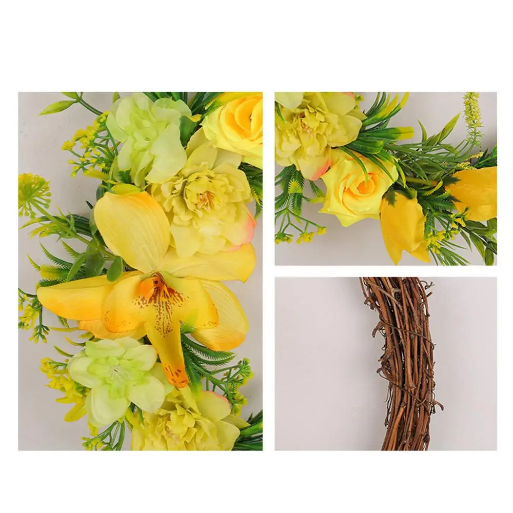 3. Atractivo: Nuestra corona de rosas amarillas para la puerta delantera presenta una mano de obra excepcional y materiales de primera categoría, lo que resulta en un diseño altamente realista e impresionante que elevará la belleza de su entrada.