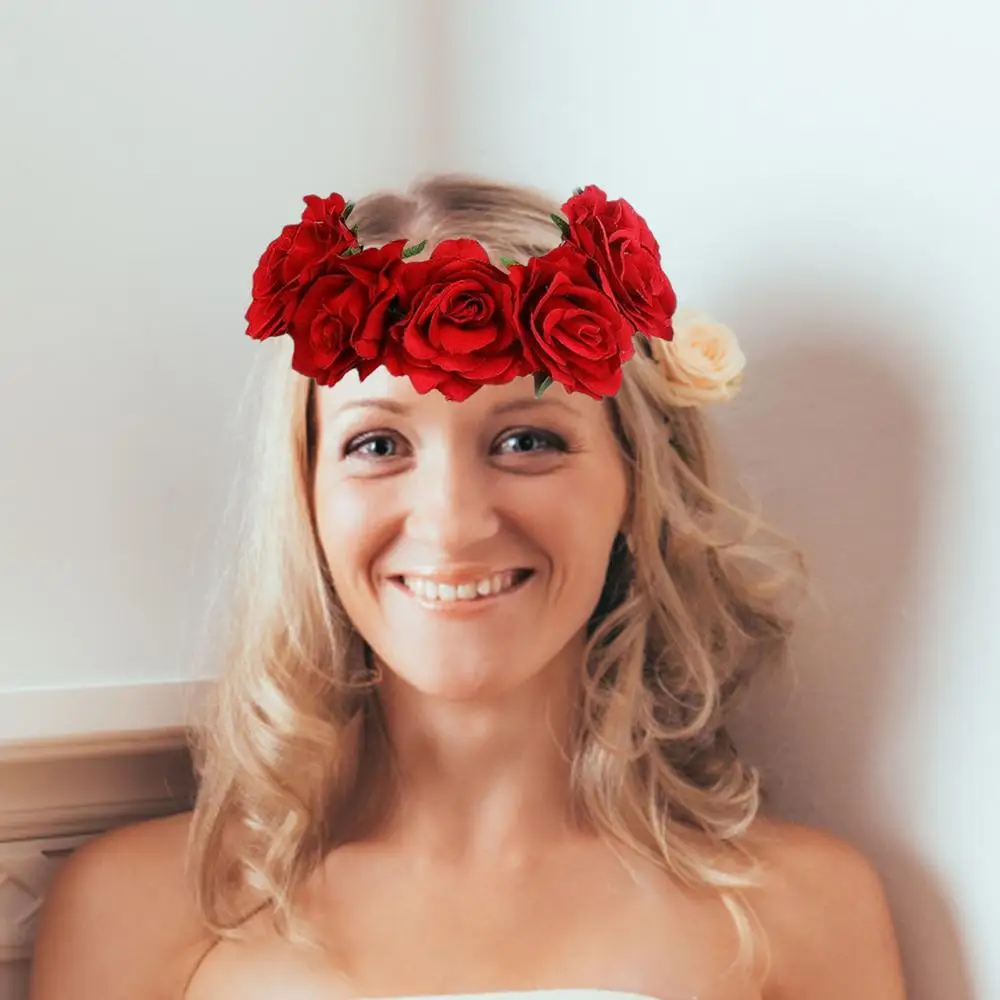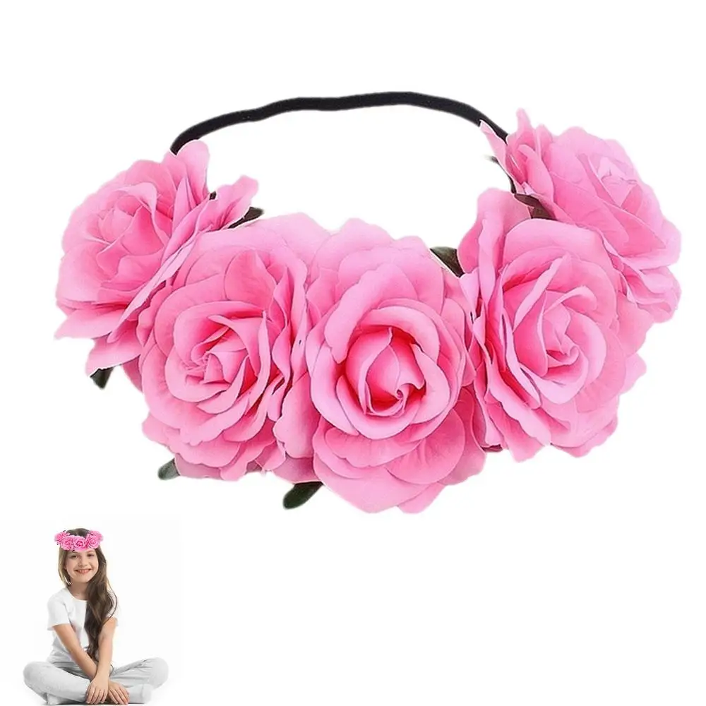 5. 【Amplia gama de uso】 nuestra diadema de guirnalda rosa es ampliamente utilizada para bodas, festivales, fotografía, etc., adecuada para novias, damas de honor o niñas con flores.