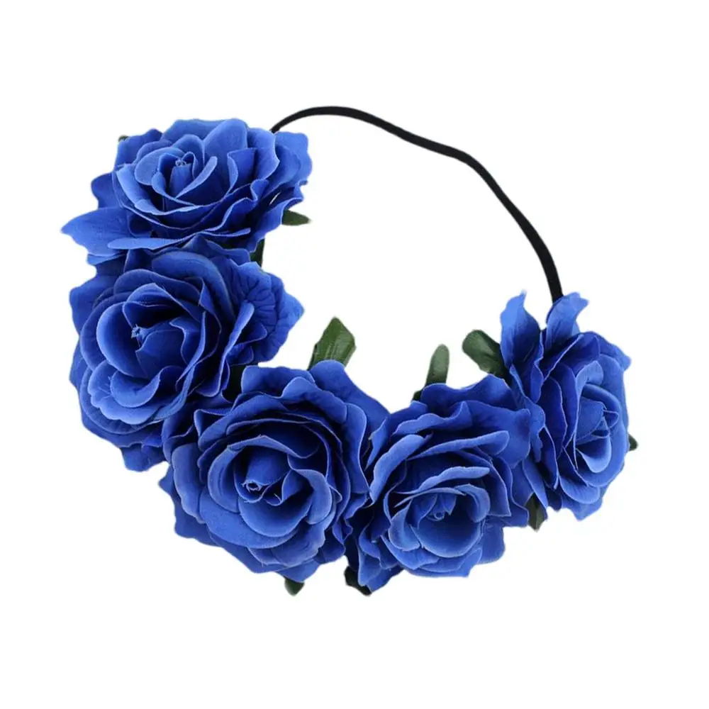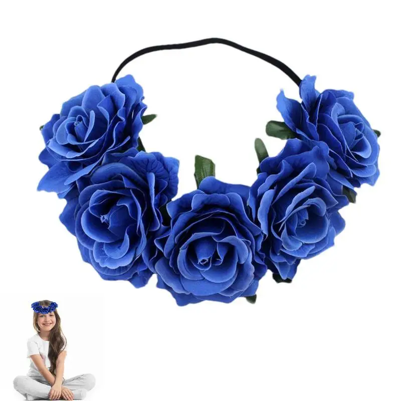 2. 【Alta elasticidad 】esta guirnalda tiene buena elasticidad y puede adaptarse bien a la cabeza. Consiste en 5 flores artificiales con un diámetro de 11cm y una banda elástica negra.