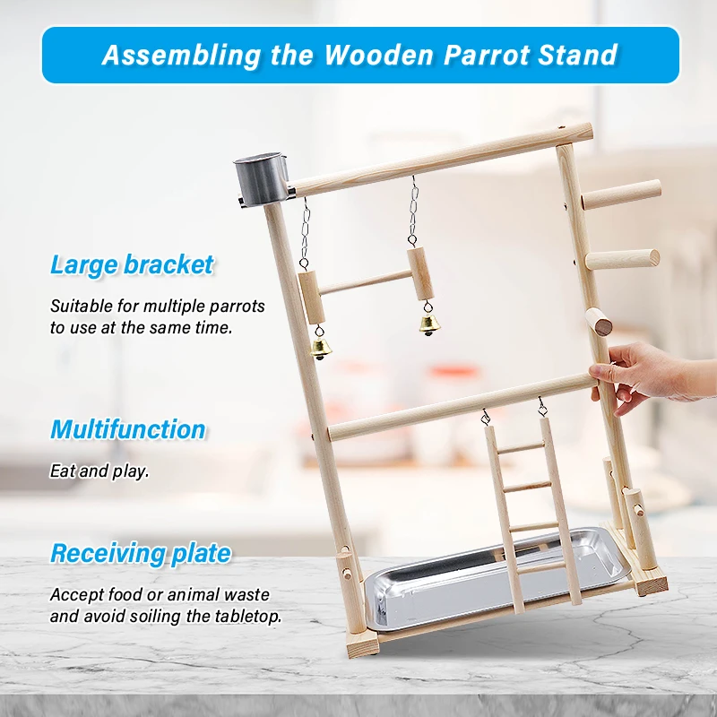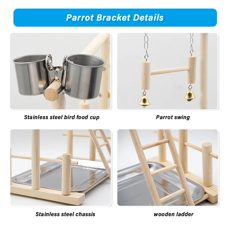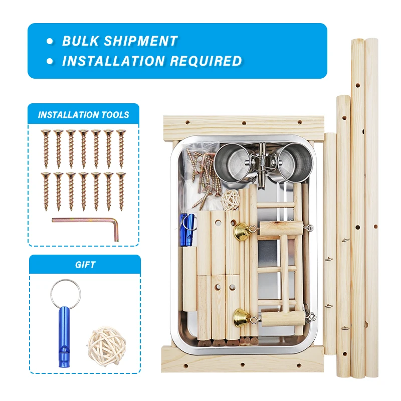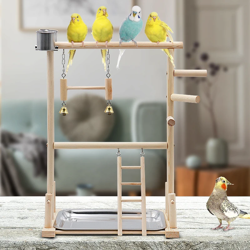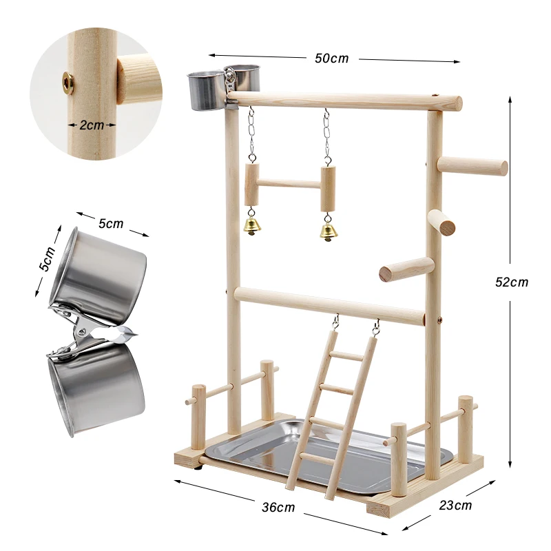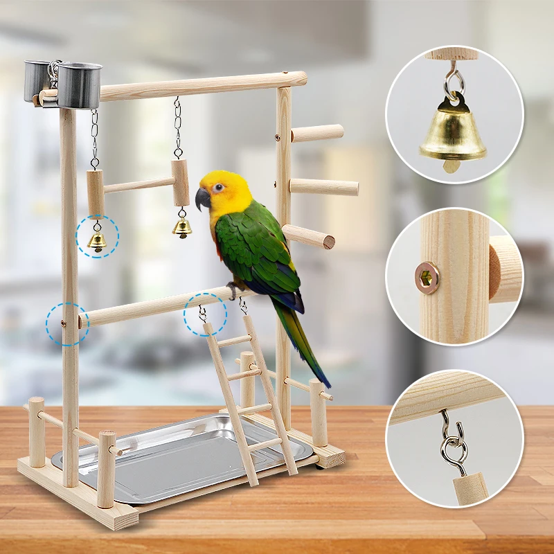 Corralitos para loros y mascotas con taza, bandeja para juguetes, columpio para pájaros, escalera colgante, puente de madera, patio de juegos para cacatúas, perchas para pájaros
