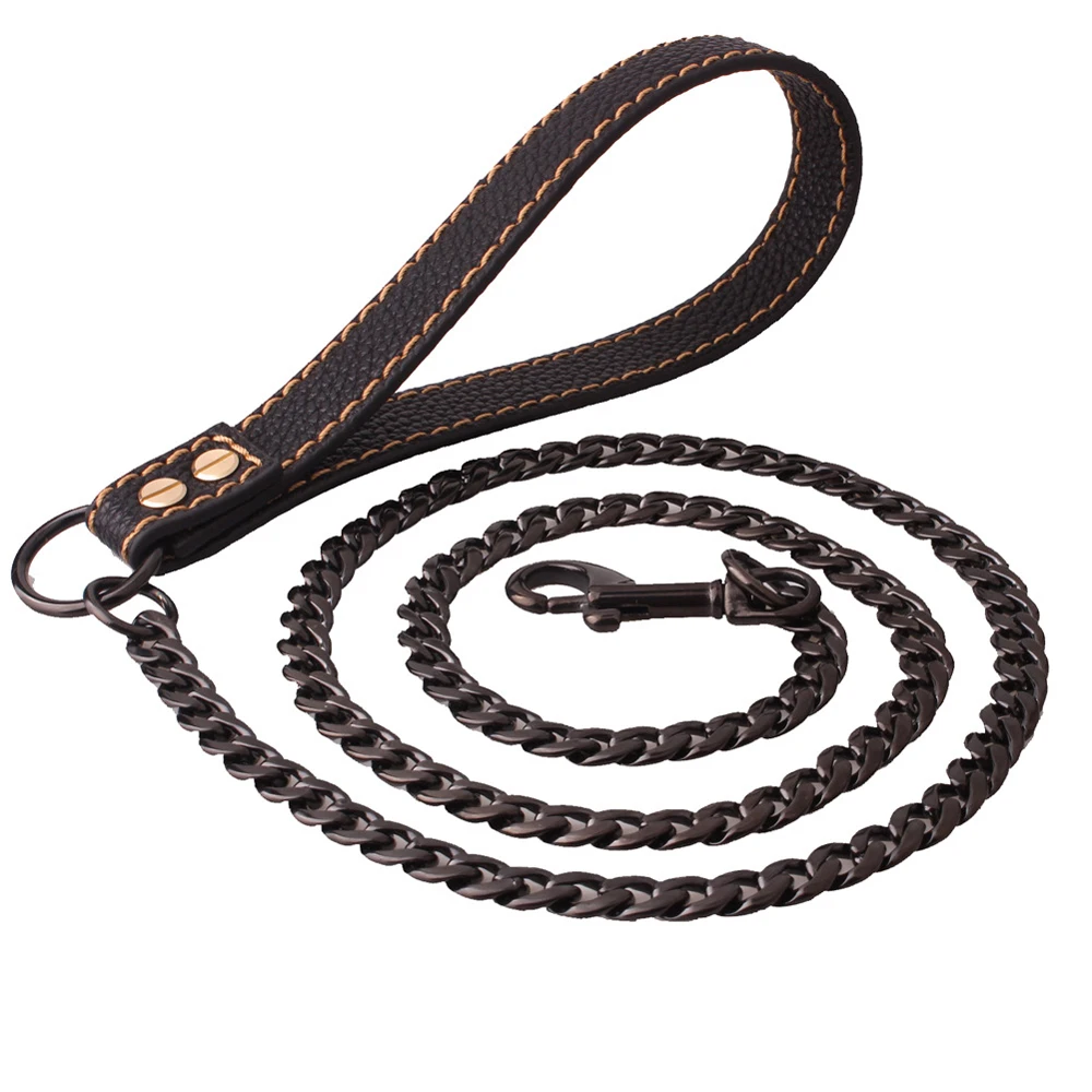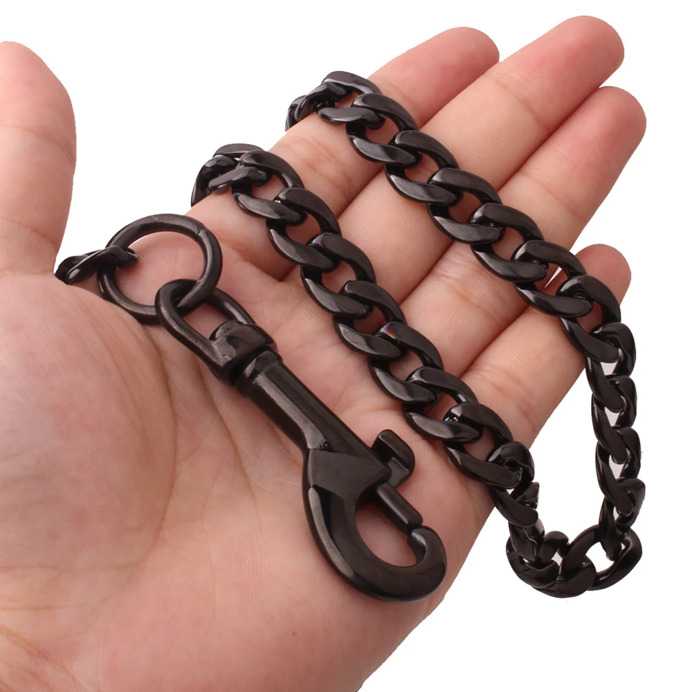Correa de perro de acero inoxidable negro dorado y plateado, cuerda de entrenamiento resistente, cadena de Metal para perros grandes, Pugs Pitbull, accesorios 10A
