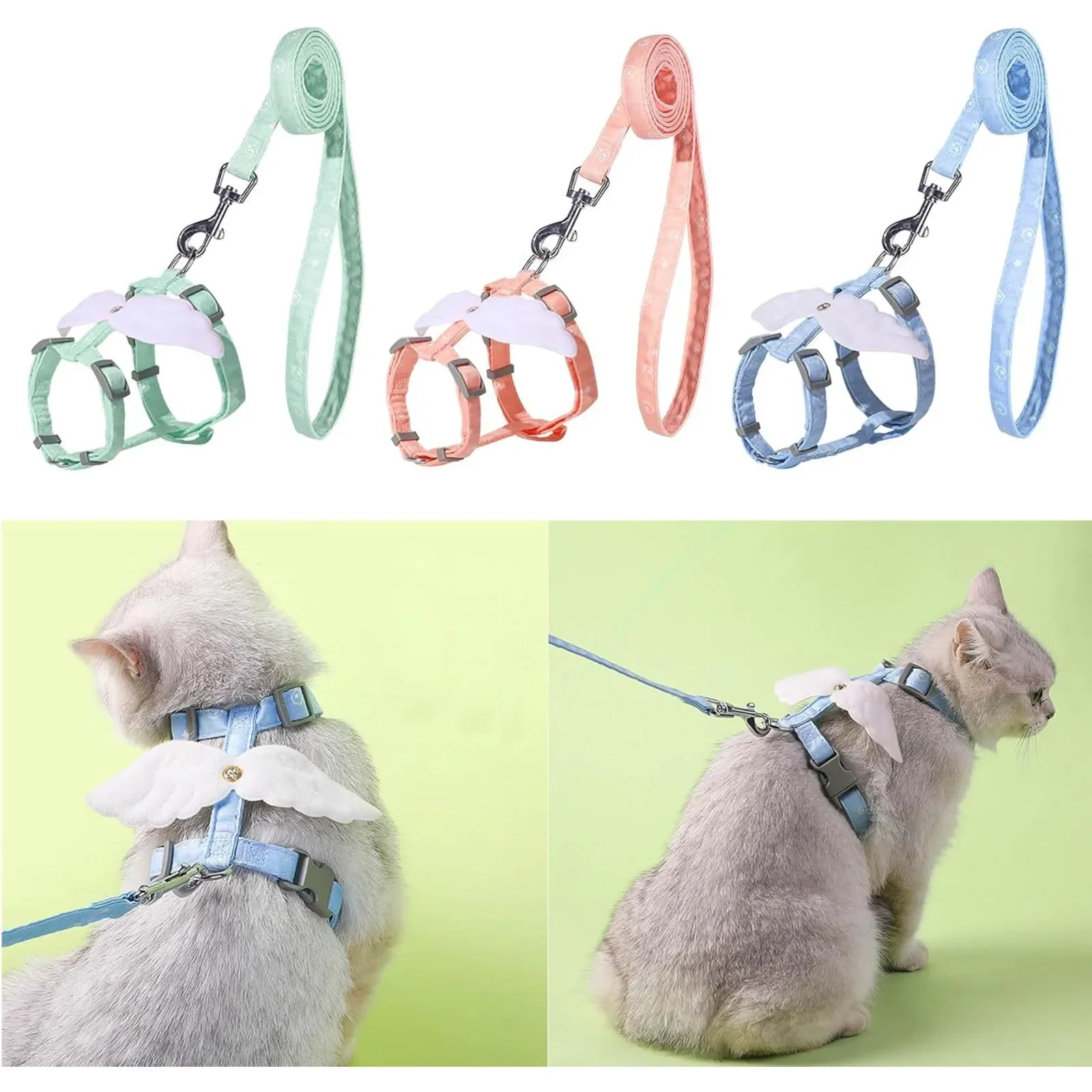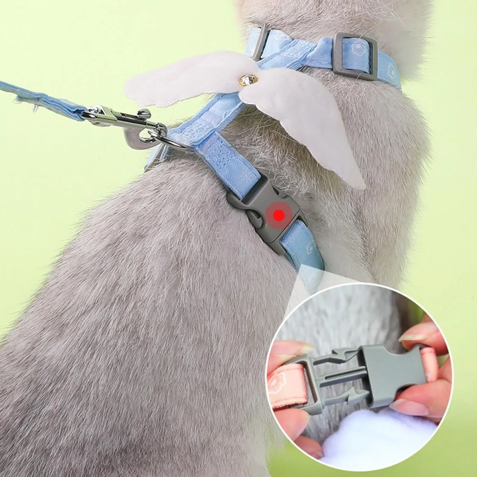 Correa ajustable para gatitos, arnés para gatos, correa para gatos, chaleco suave transpirable antiescape, adecuado para caminar al aire libre, correa para mascotas con alas de Ángel