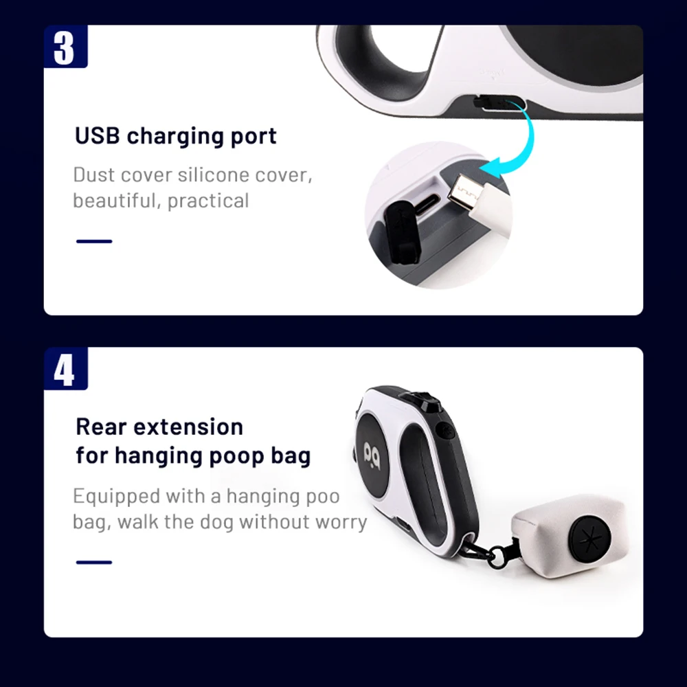 Como dispositivo inteligente, esta correa se puede personalizar para satisfacer sus necesidades, ofreciendo una experiencia avanzada y personalizada de paseo de mascotas.