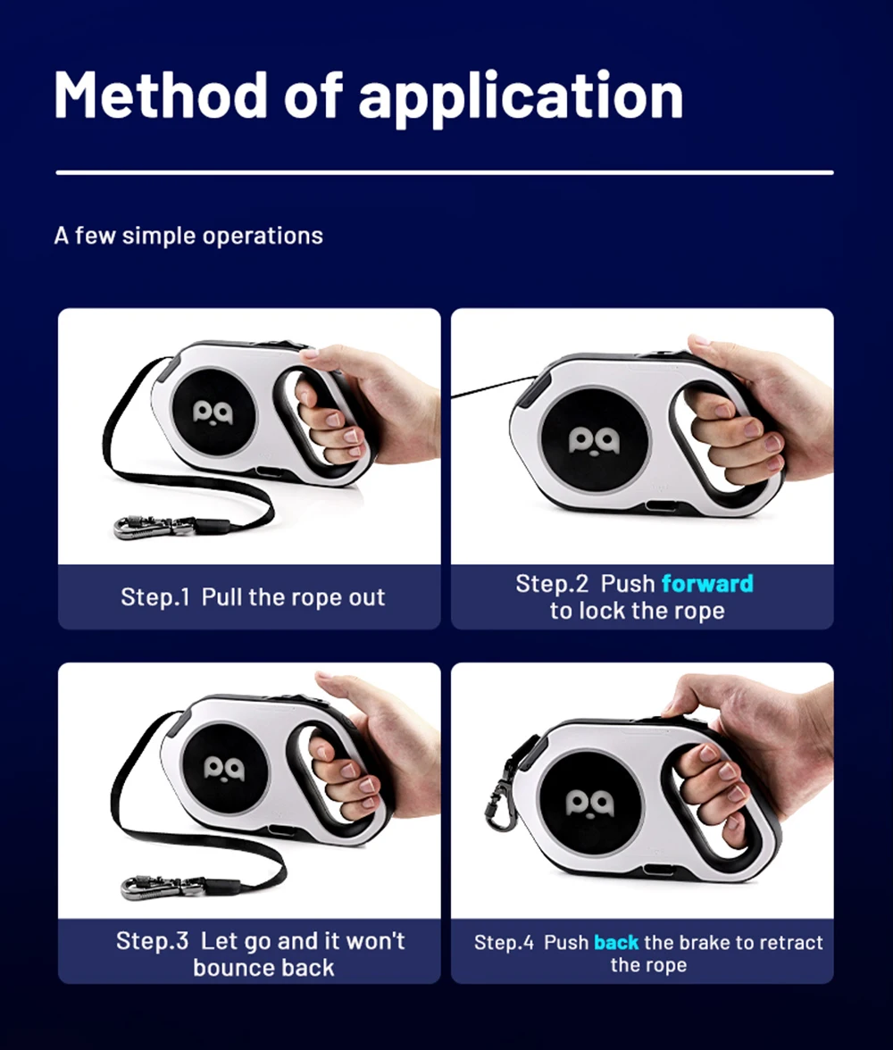 La correa retráctil automática de 5M permite caminar con manos libres, brindándole a su perro libertad y control.