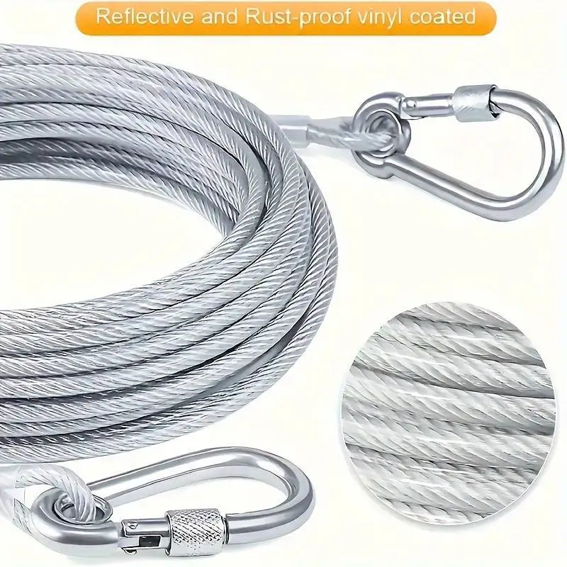 Correa de Cable de amarre para perro de doble cabeza, cuerda de tracción con hebilla de metal, collar de entrenamiento antioxidante de alambre de acero, correa para perros al aire libre