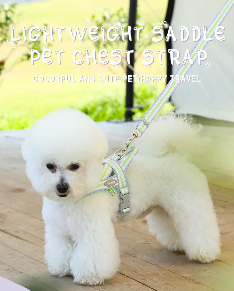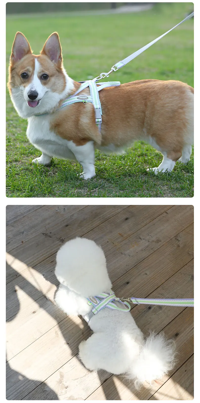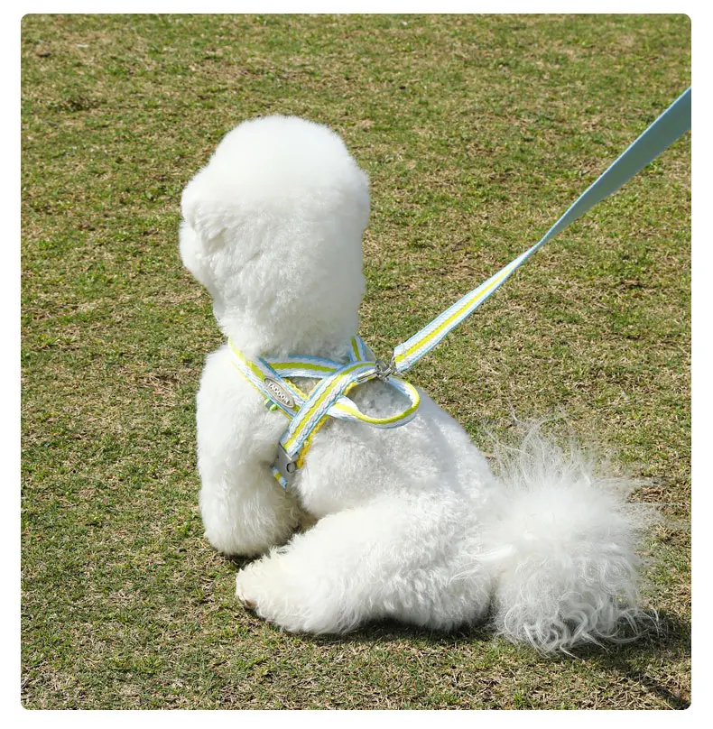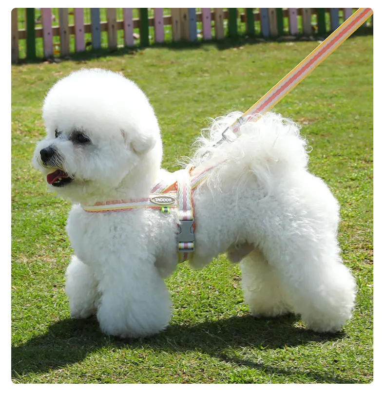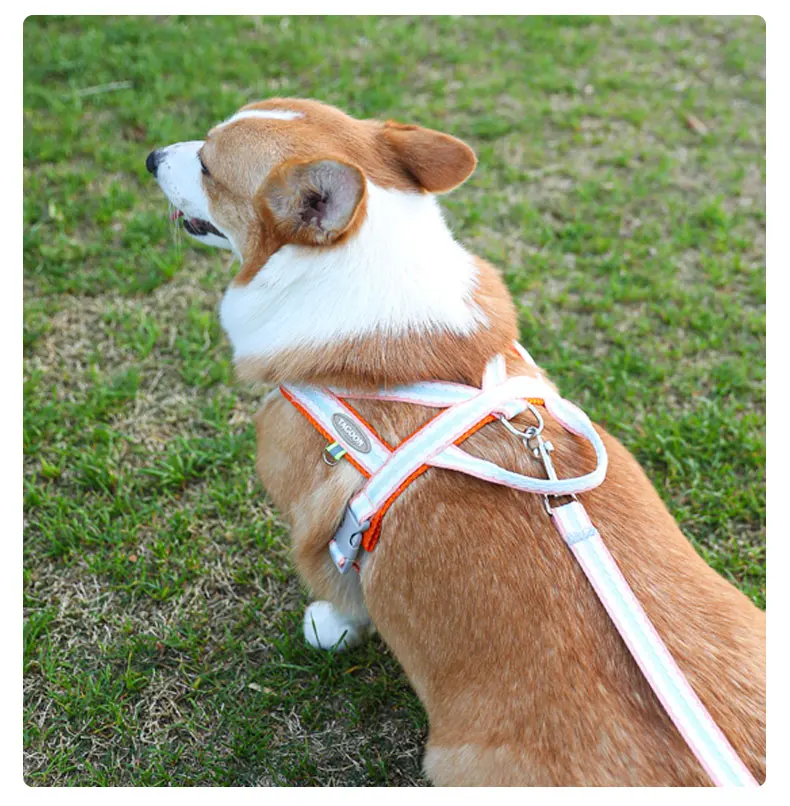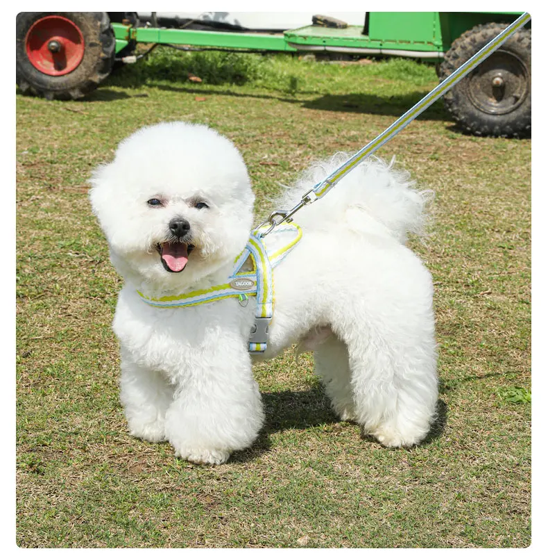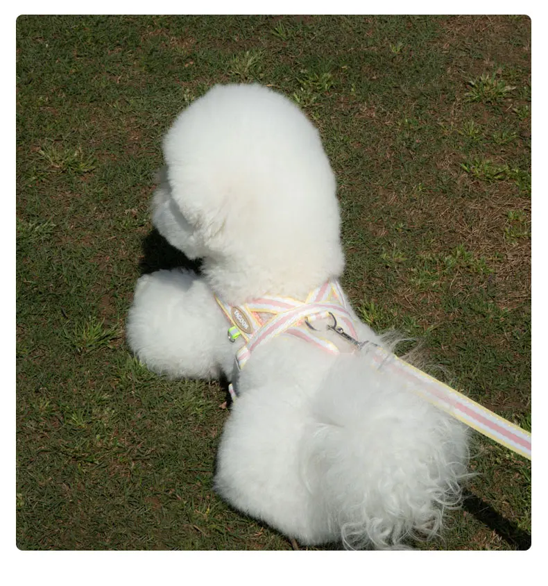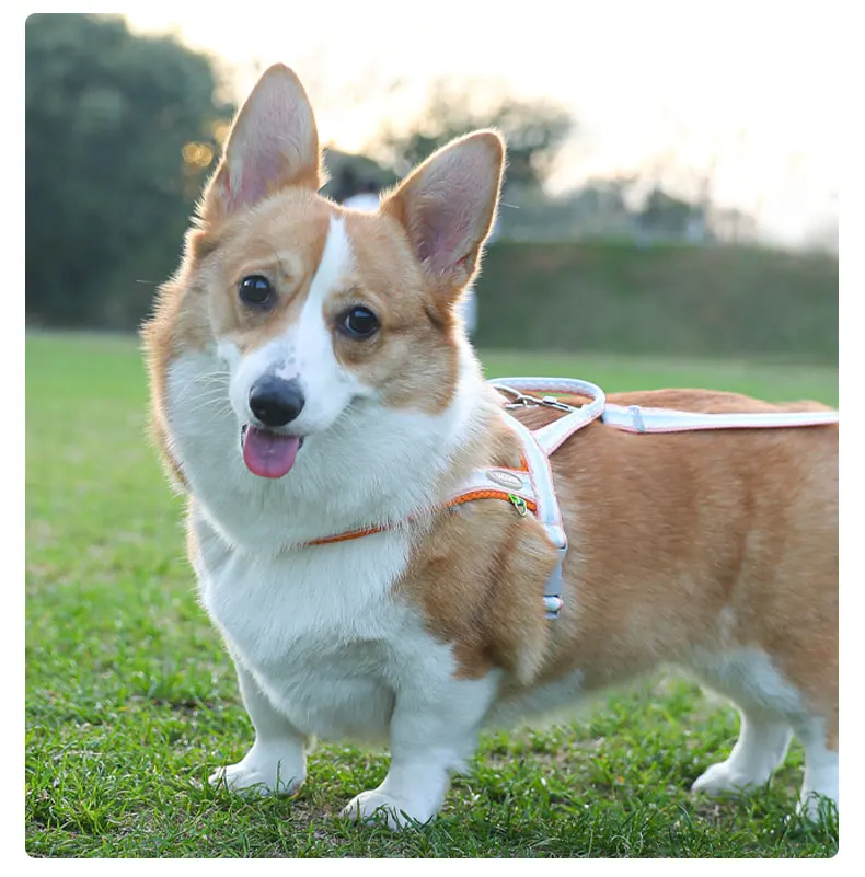 Solo sujeta el área del pecho. Si el perro empuja desde atrás, la parte del cuello se inclina hacia adelante, haciendo que la parte delantera se tambalee (?). Está colgado, jaja (no se va). Puede que sea cómodo porque no toca la piel, pero la forma es un poco... La cuerda es resistente.