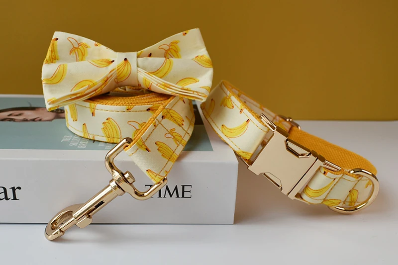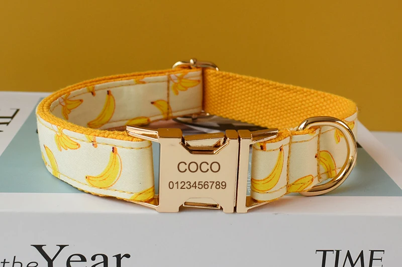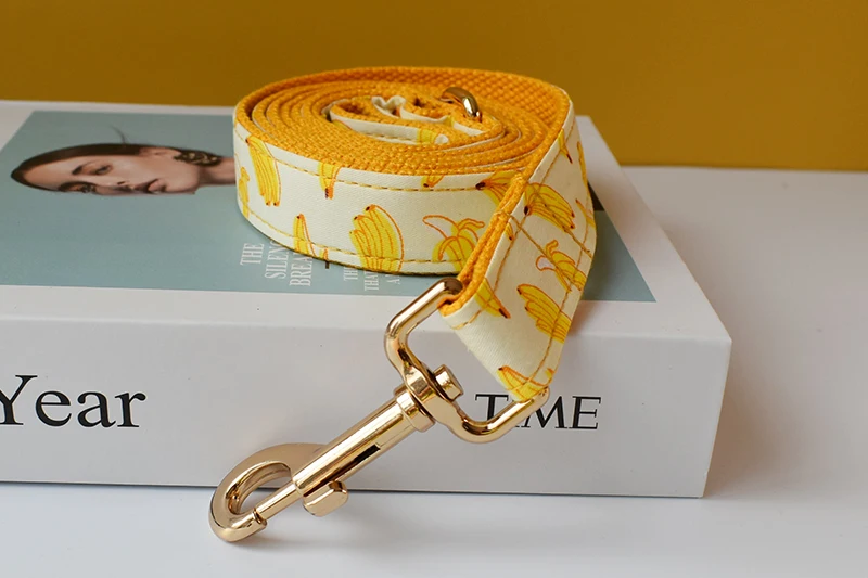 Correa de nailon con diseño de plátano personalizado, collar de perro con lazo, cuerda de tracción para perros pequeños y grandes, correas ajustables para collar de mascotas, fruta 02