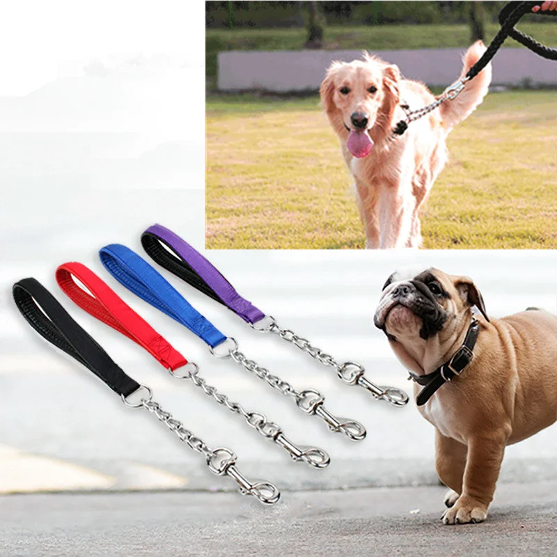 Correa corta de acero inoxidable para perro, correas a prueba de mordeduras para perros grandes, cuerda de tracción para caminar, cadena de nailon, productos para mascotas