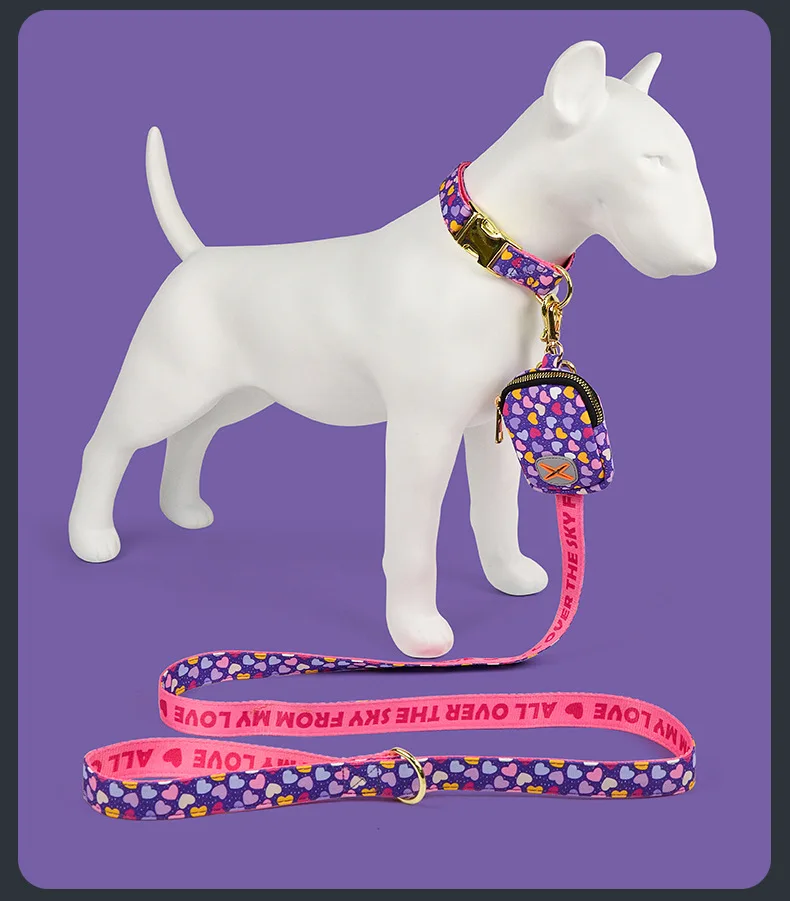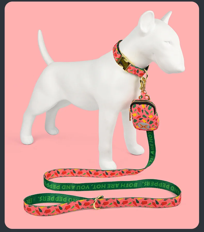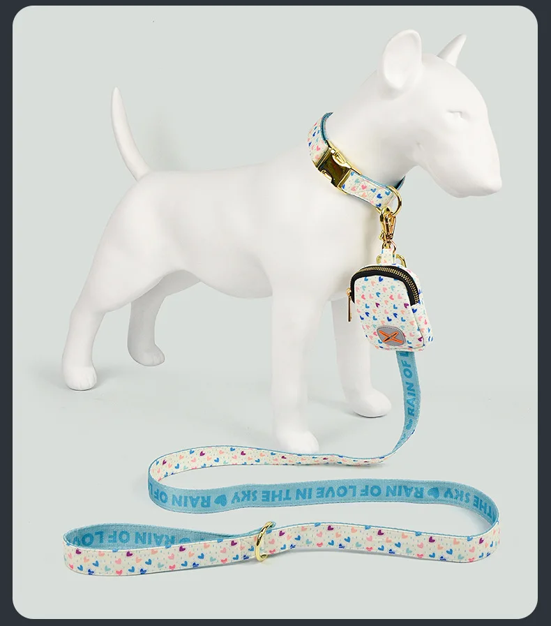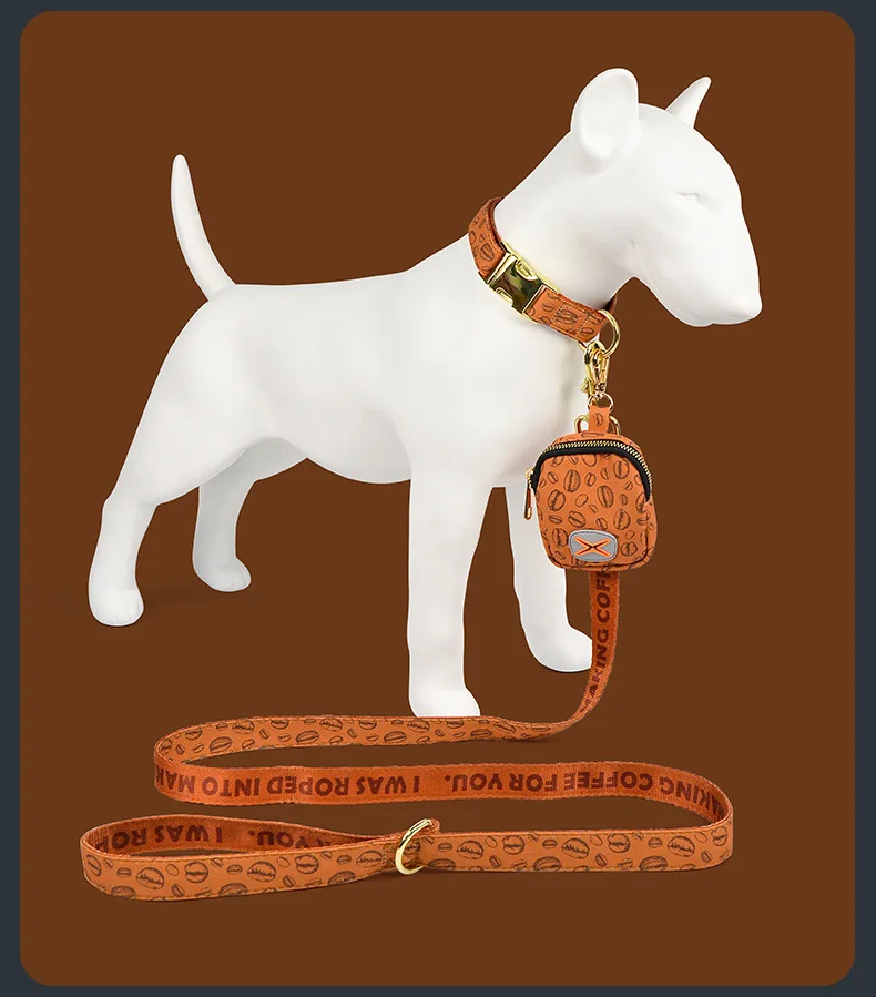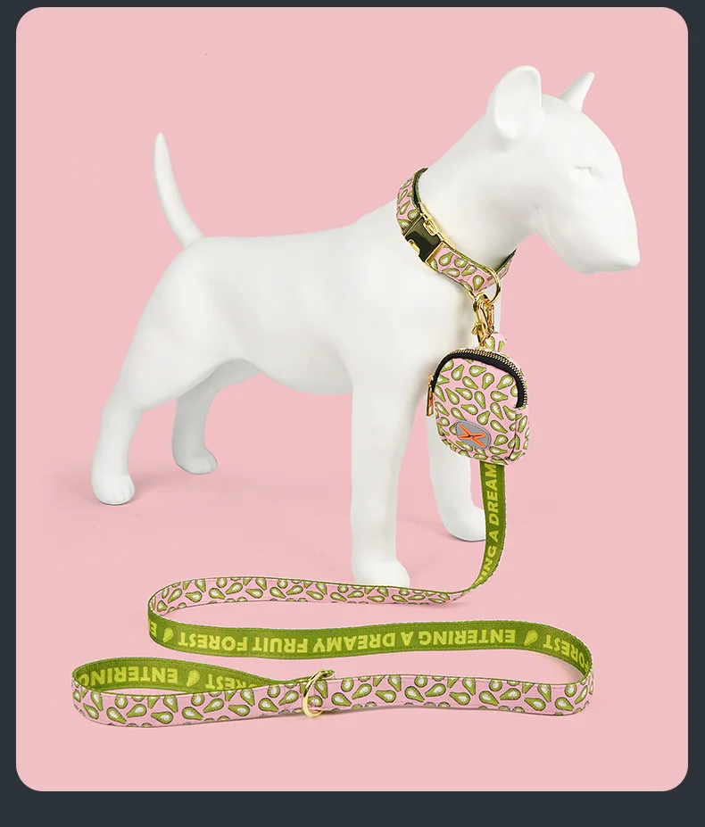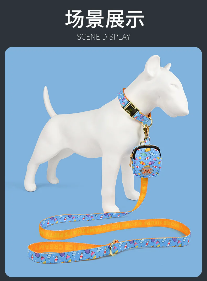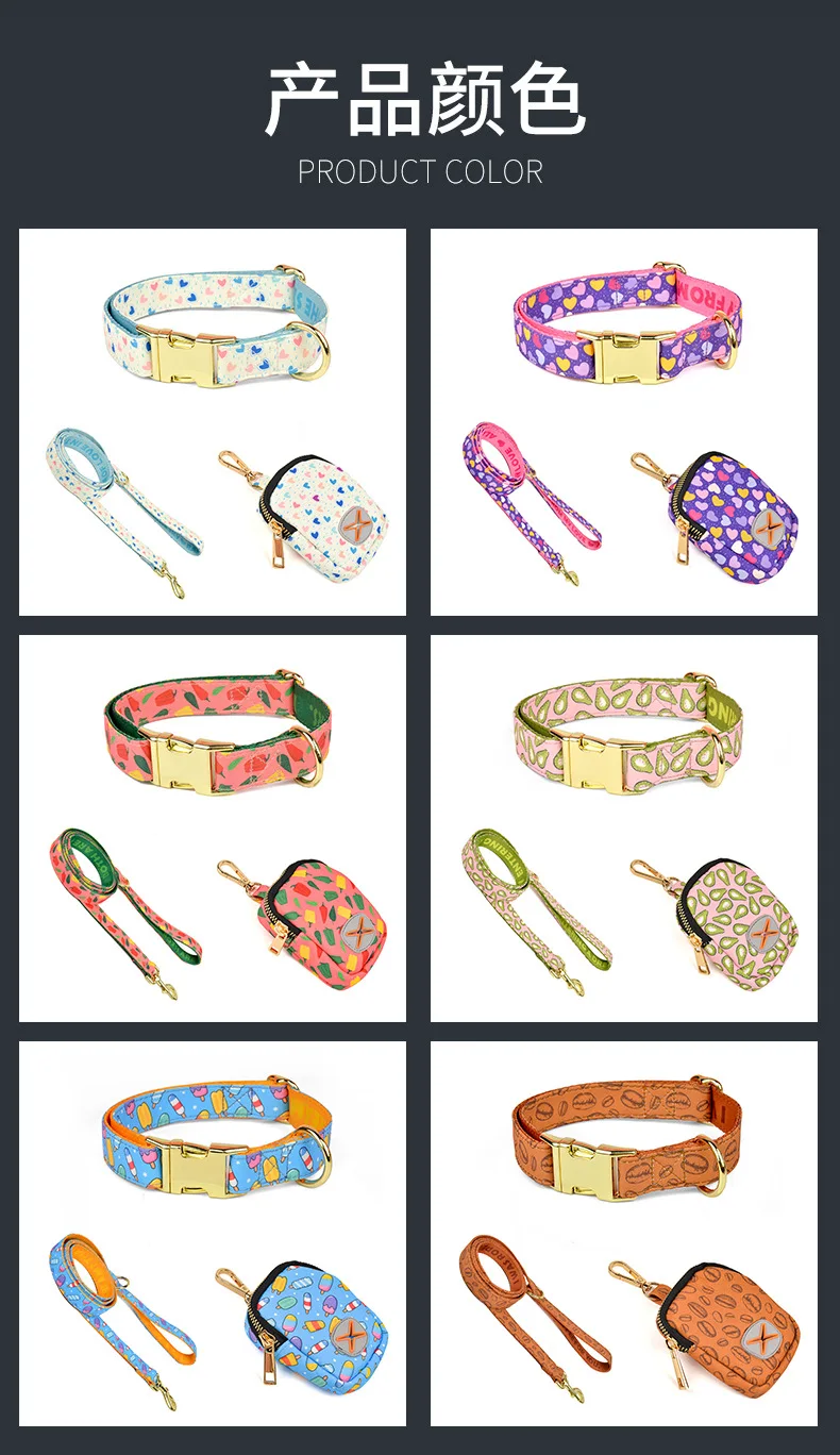 Correa de cuello estampada de doble cara resistente y bolsa de basura, juego de 3 piezas para perros y gatos, bonitos y duraderos accesorios para caminar para mascotas