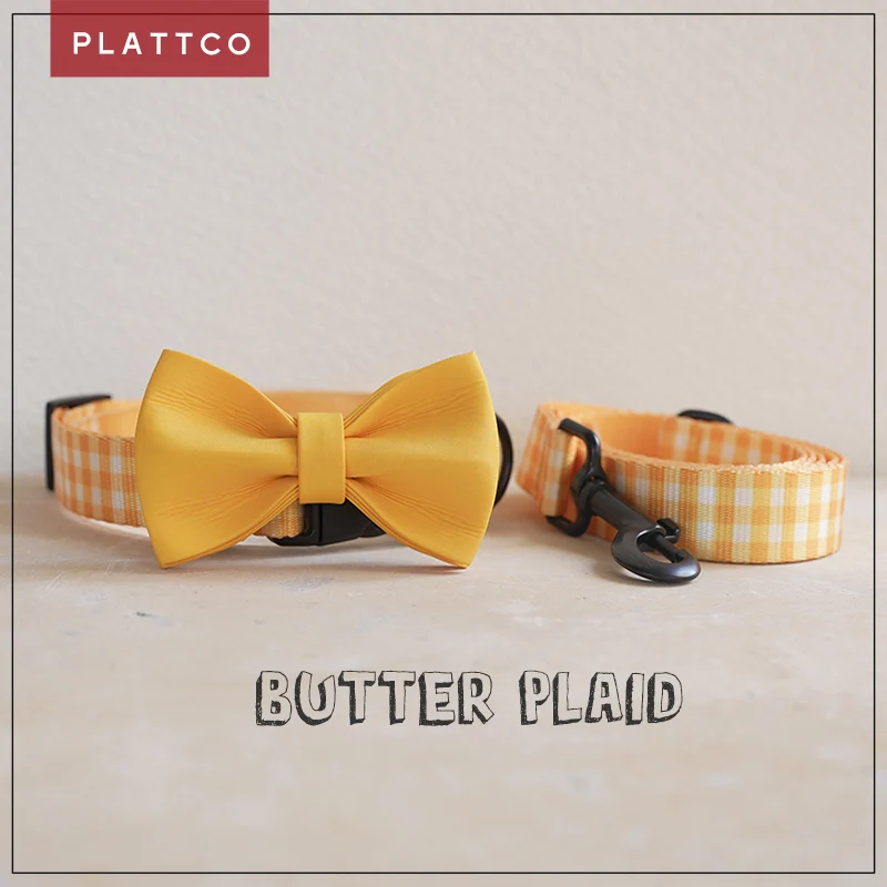 Correa para collar con pajarita para perro PLATTCO diseñada para perros grandes, medianos y pequeños PLAID A BUTTER combina inteligentemente cinta de impresión 5 tamaños PDC307 PDC307