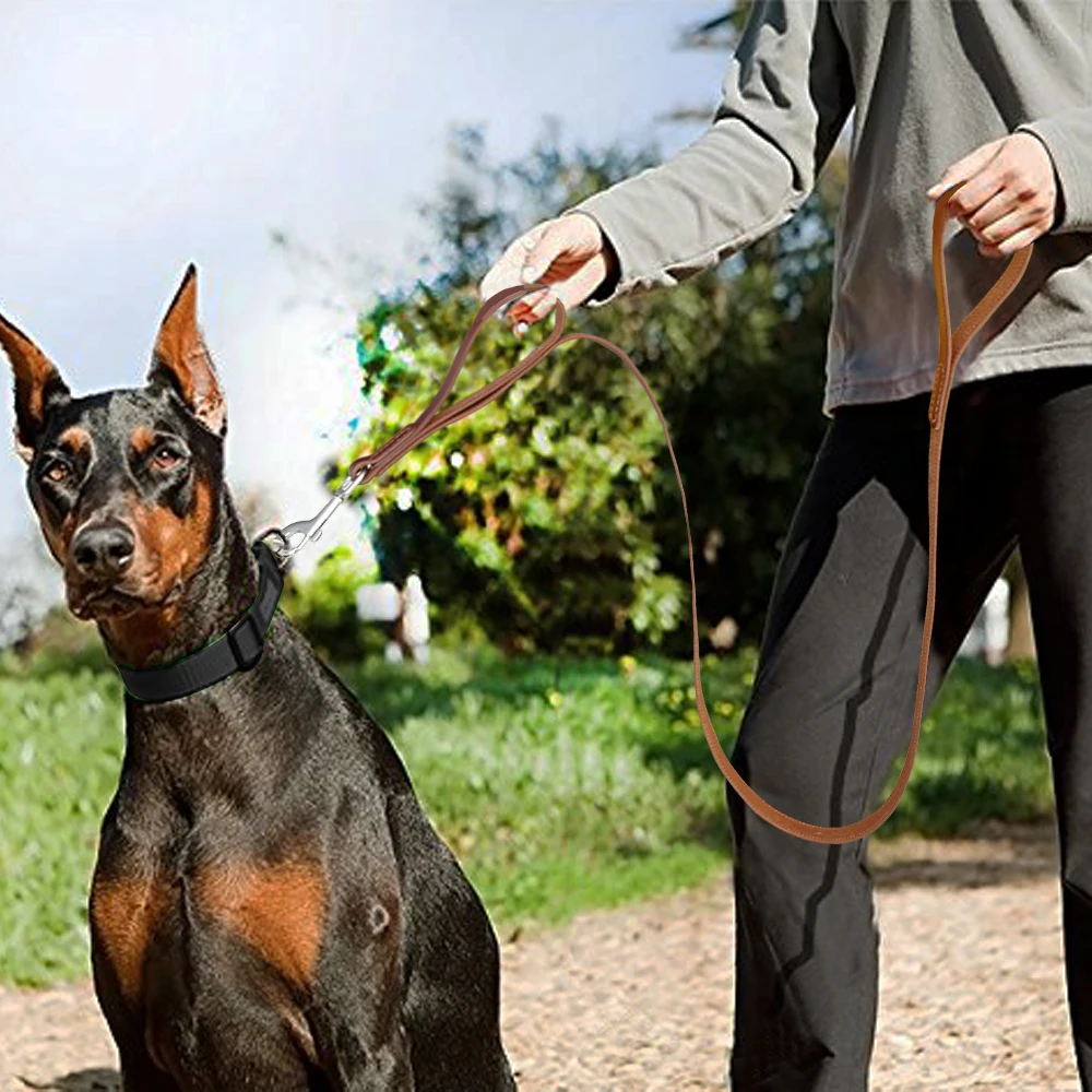 Correa de cuero genuino para perros, correa para entrenamiento de mascotas, correas para caminar para perros medianos y grandes, Control rápido con 2 asas