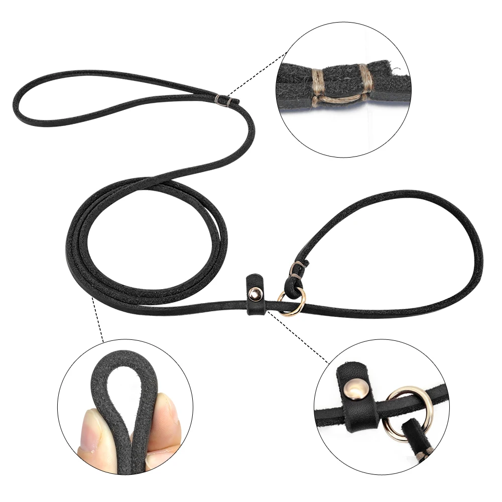 4ft/5ft Leather Dog Leash P Chian Collar Traction Lead Rope For Chihuahua Bulldog Small Dogs Leashes Slip Collars Pet Supplies