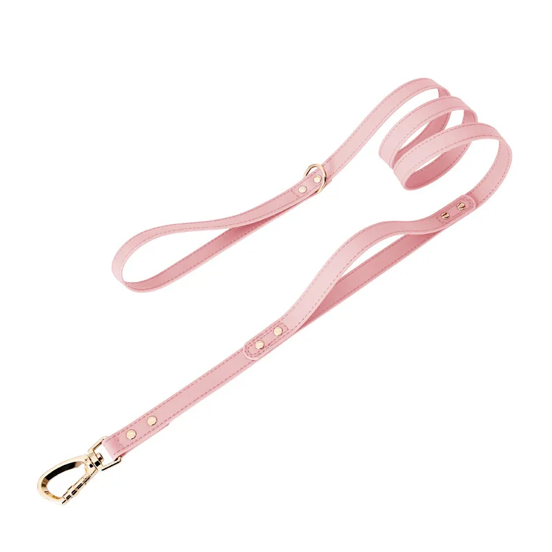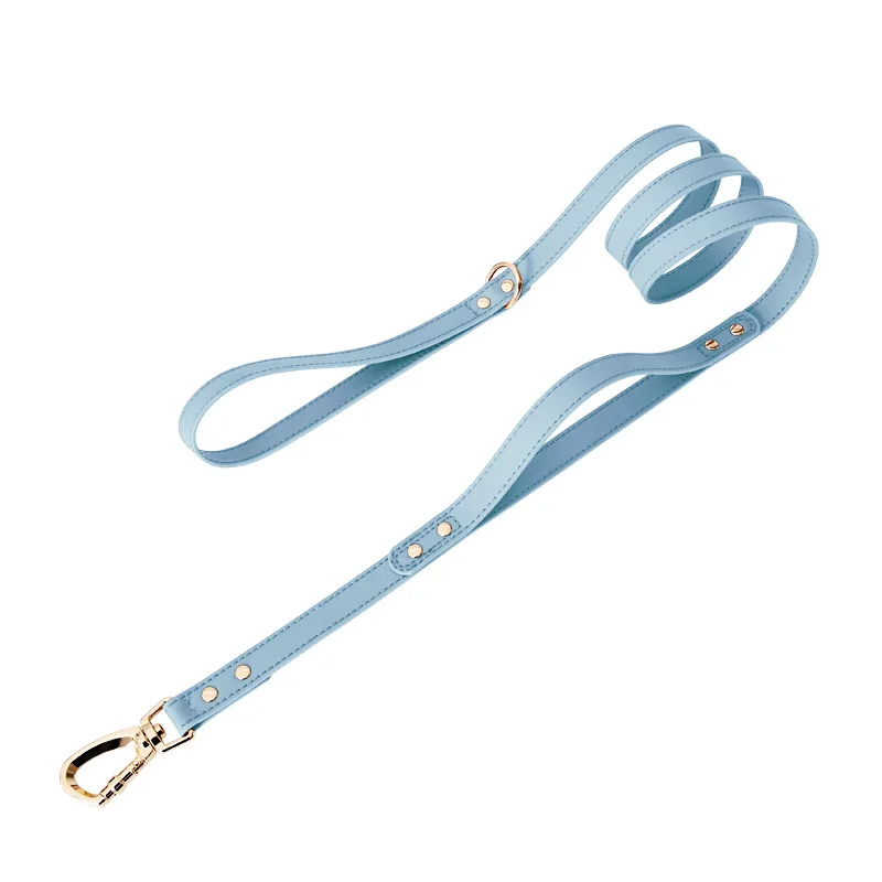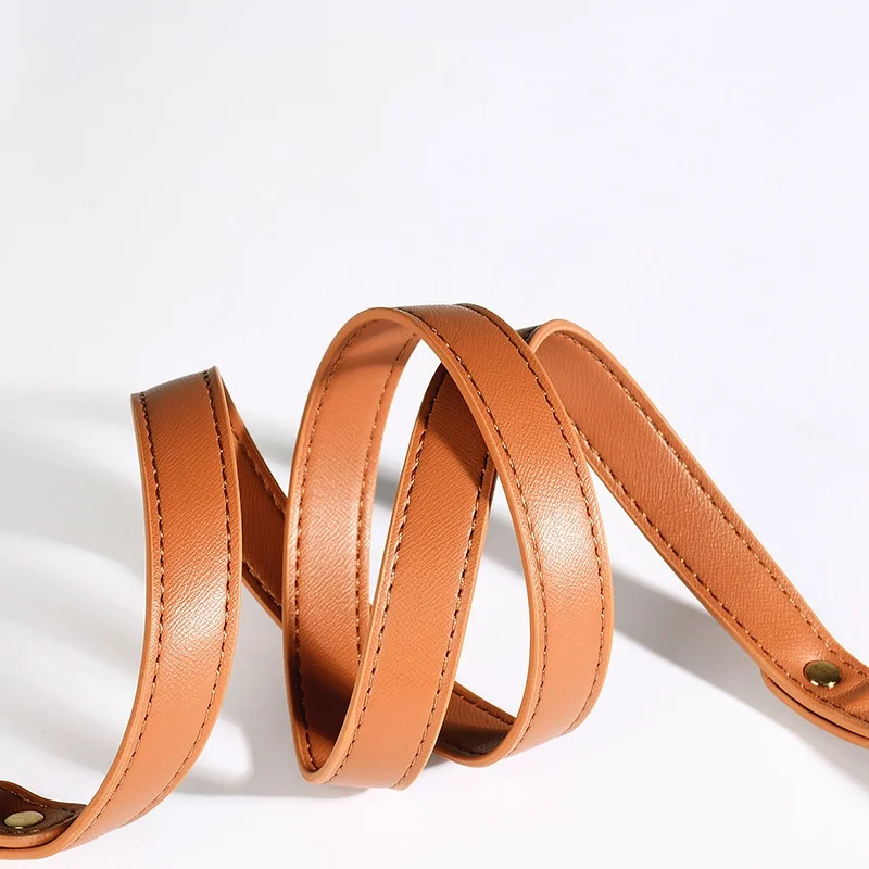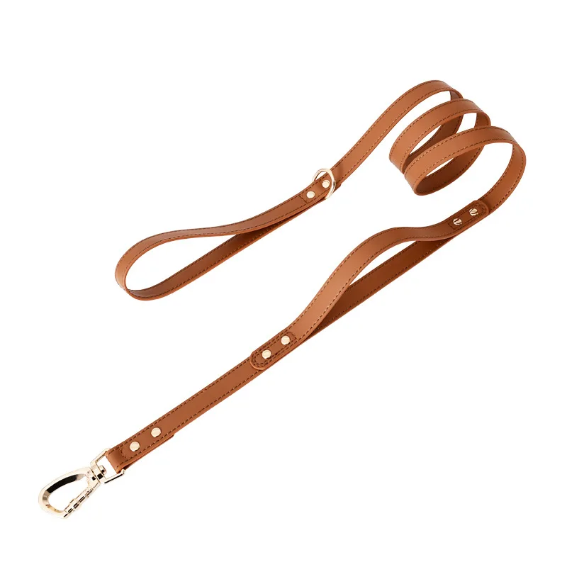 Correa de cuero suave para mascotas con mango de tráfico, correa de entrenamiento para perros con accesorios de metal, correa de plomo largo para perros de doble mango