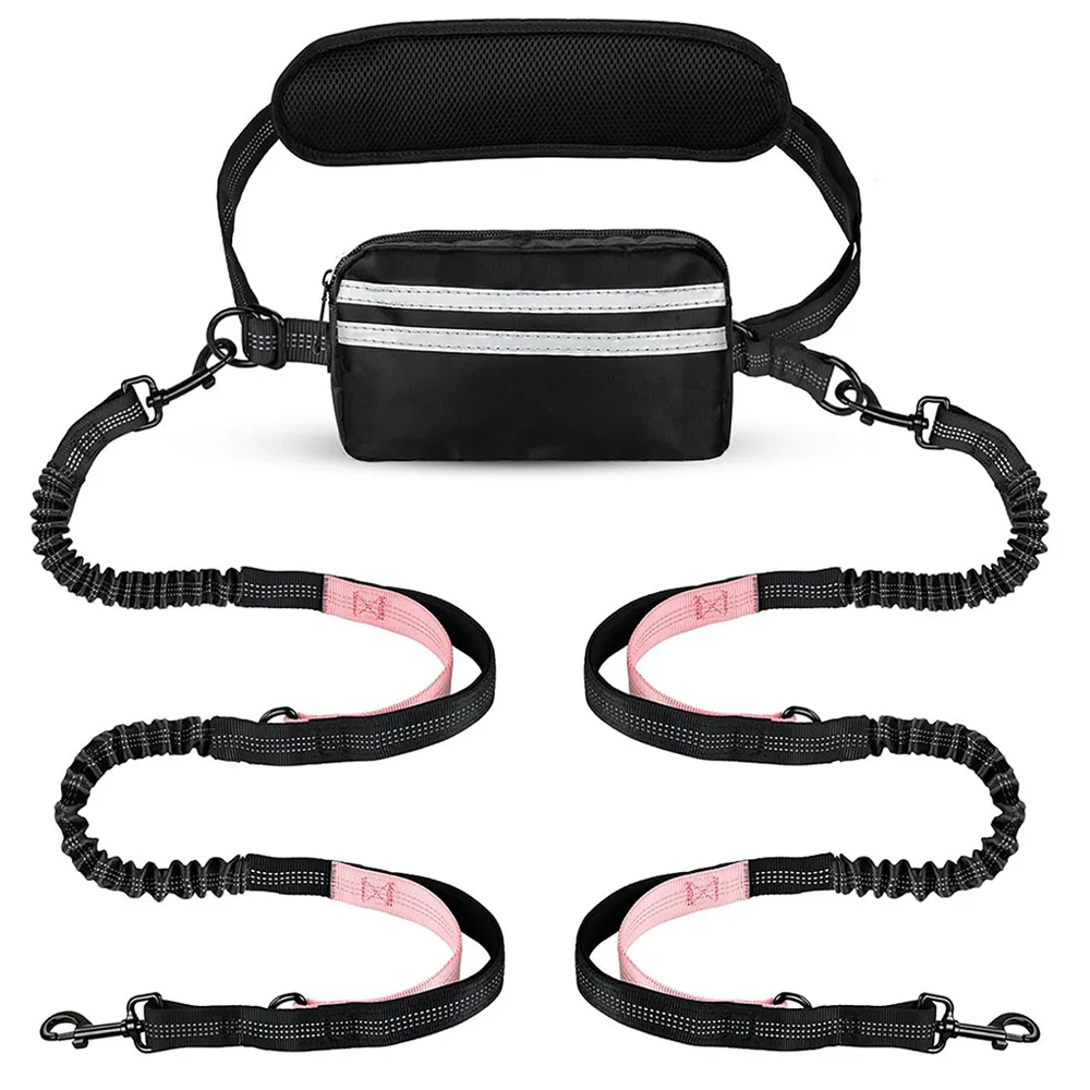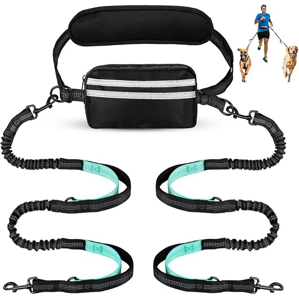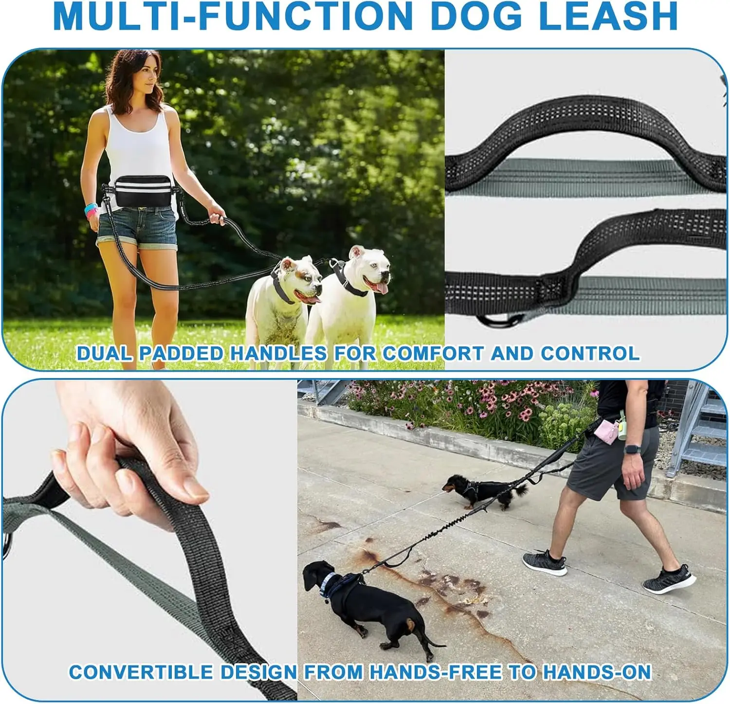Correa doble para perros manos libres con bolsa para perros medianos y grandes - Correa cruzada y de cintura para caminar con perros - Sin tirar, sin enredos