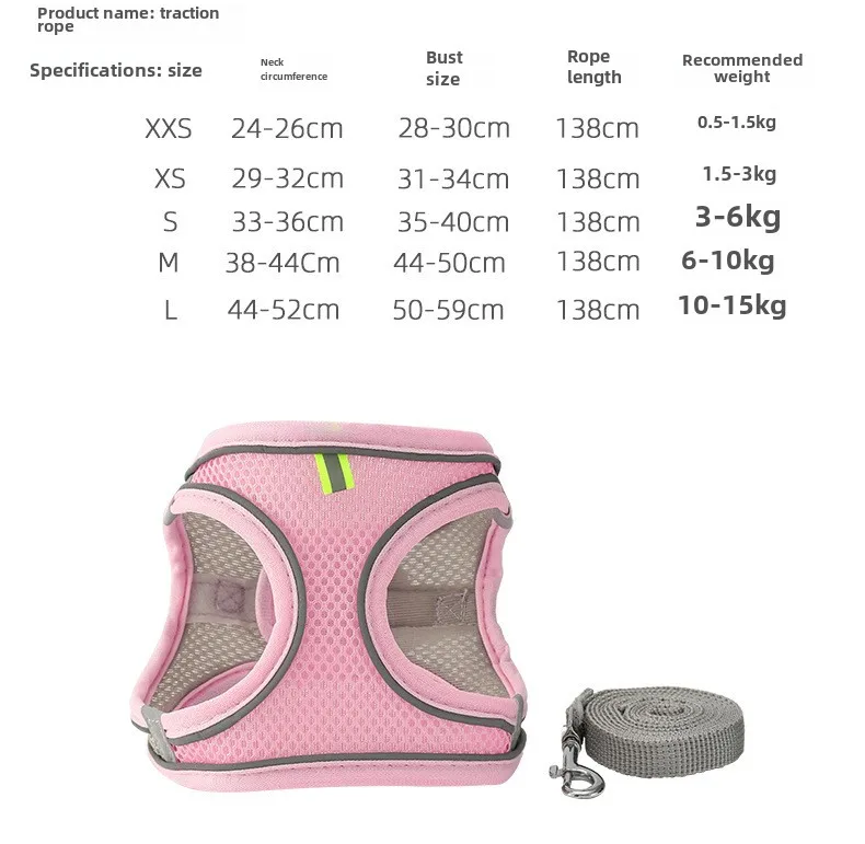 Correa para el pecho para mascotas, tipo chaleco, correa transpirable para perros y gatos, cuerda reflectante para caminar para perros, suministros para mascotas