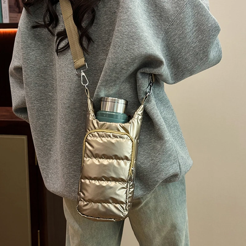 Correa para el hombro, bolsa portabotellas de agua, bolsillo frontal de nailon, soporte para botella de agua, bolsa con eslinga portátil para botella de agua, funda de viaje