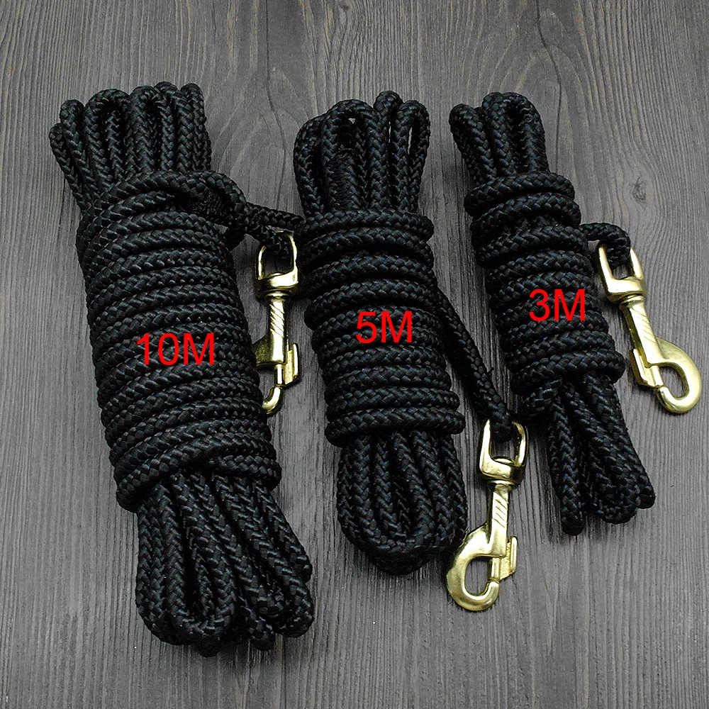 Correa larga de nailon para perros, correa de seguimiento para mascotas, cuerda redonda negra, correas de plomo para entrenamiento para caminar, 3M/5M/10M/20M para perros medianos y grandes