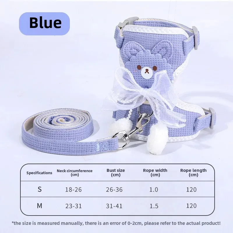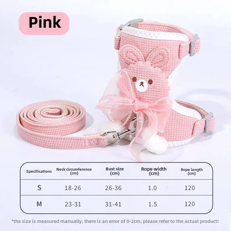 Correa con lazo para cachorros, cuerda de tracción para gatos, chaleco ajustable especial antirotura, cadena para gatos, cuerda para caminar, bola colgante para el pecho y la espalda