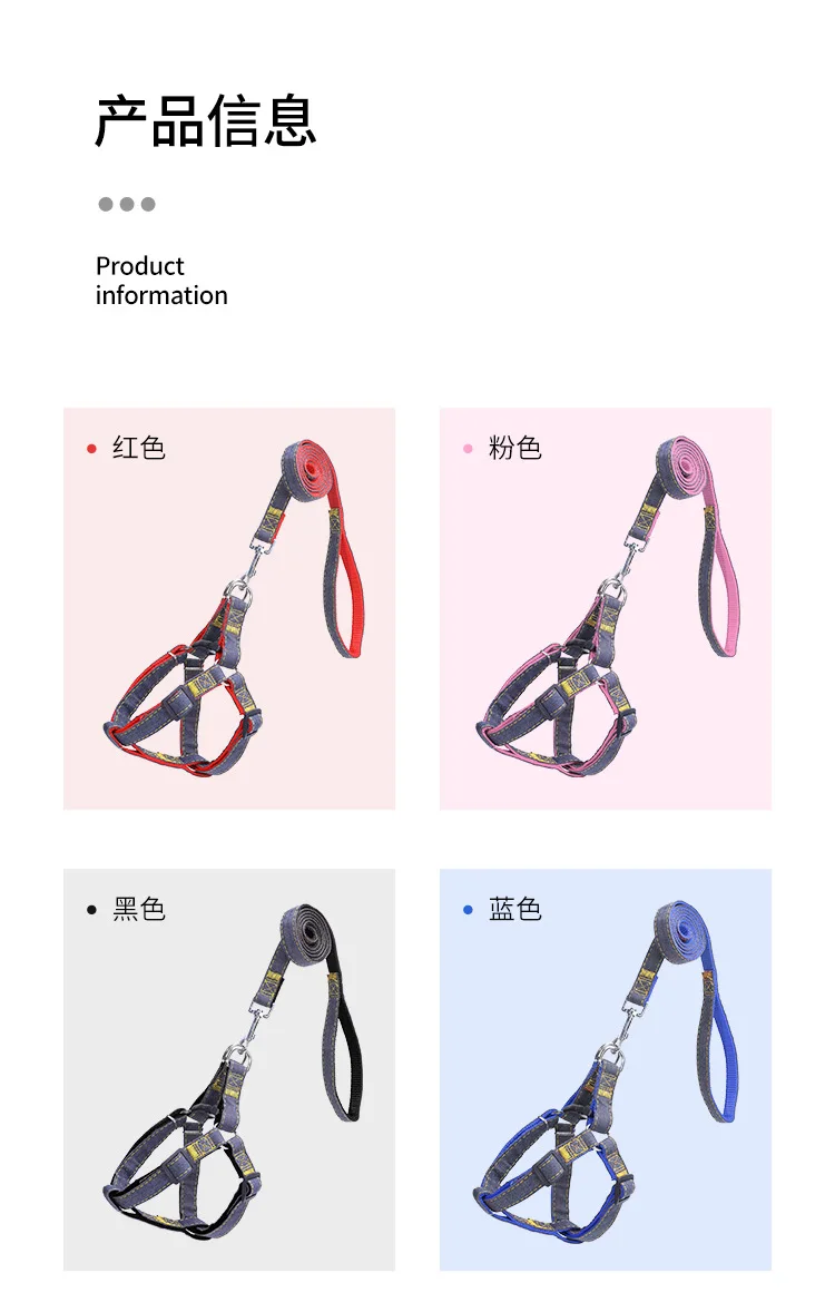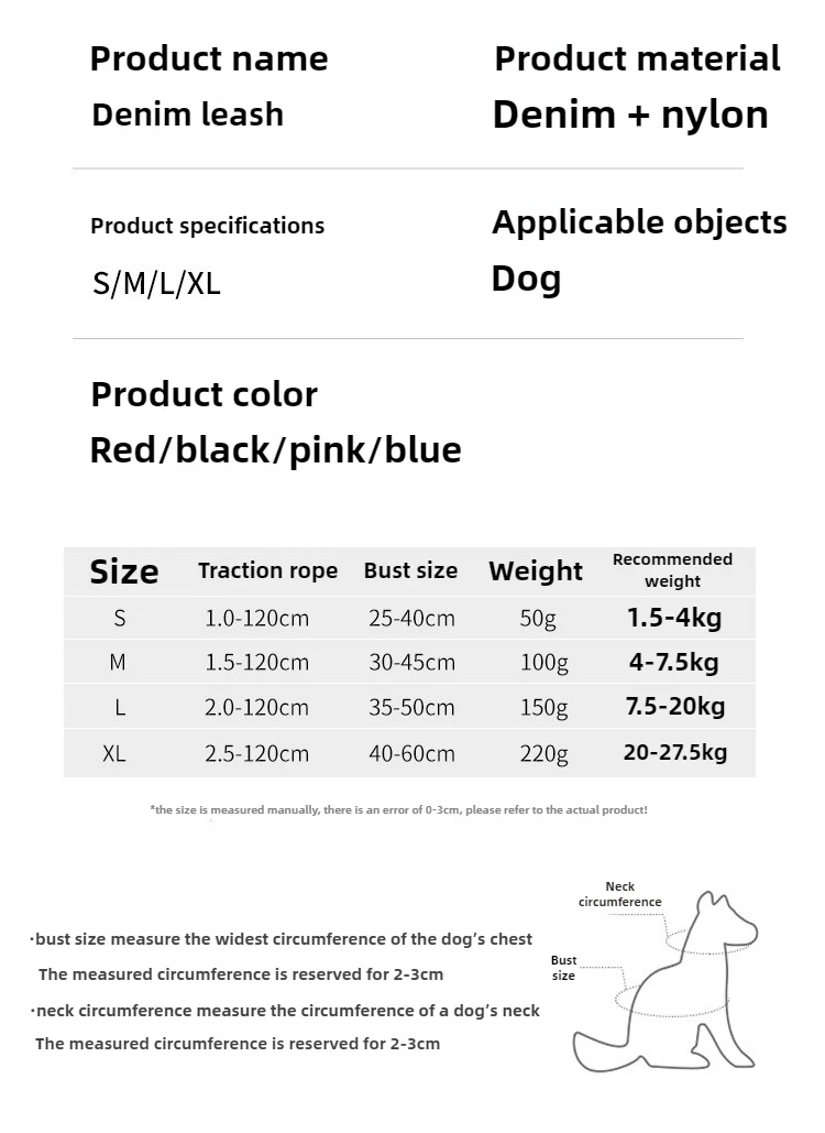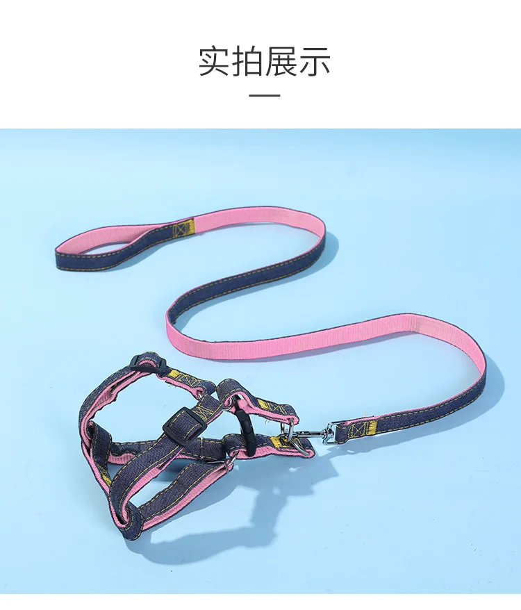 Correa para mascotas, correa para el pecho de mezclilla, conjunto de Collar con correa para perro, cadena para perro, suministros para mascotas