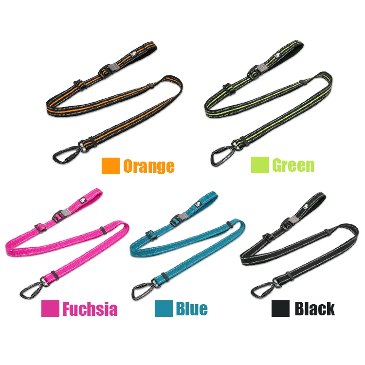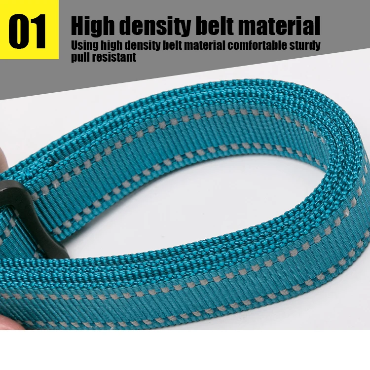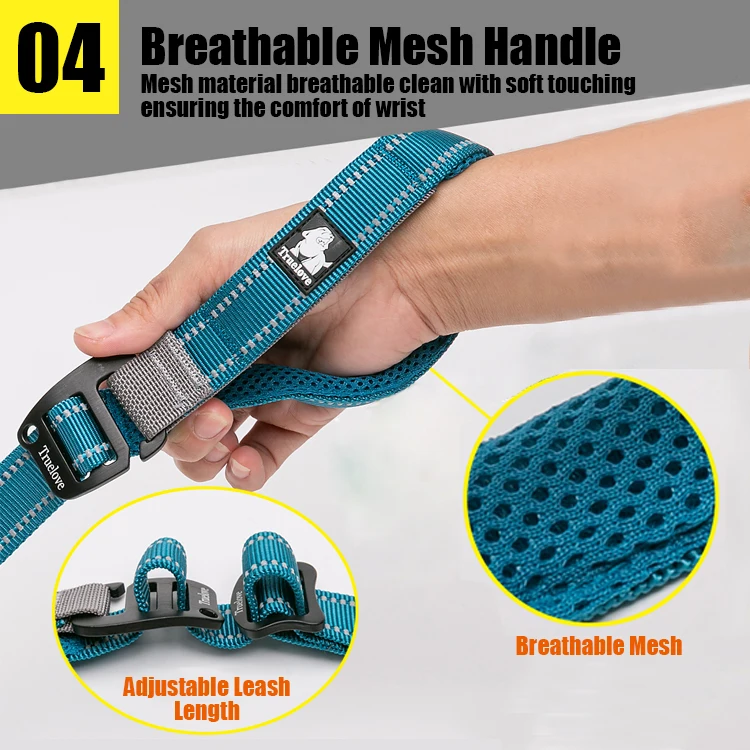 3. El mosquetón de aleación de aluminio tiene una función de bloqueo giratorio que asegura el collar o el arnés de sus perros a la correa.