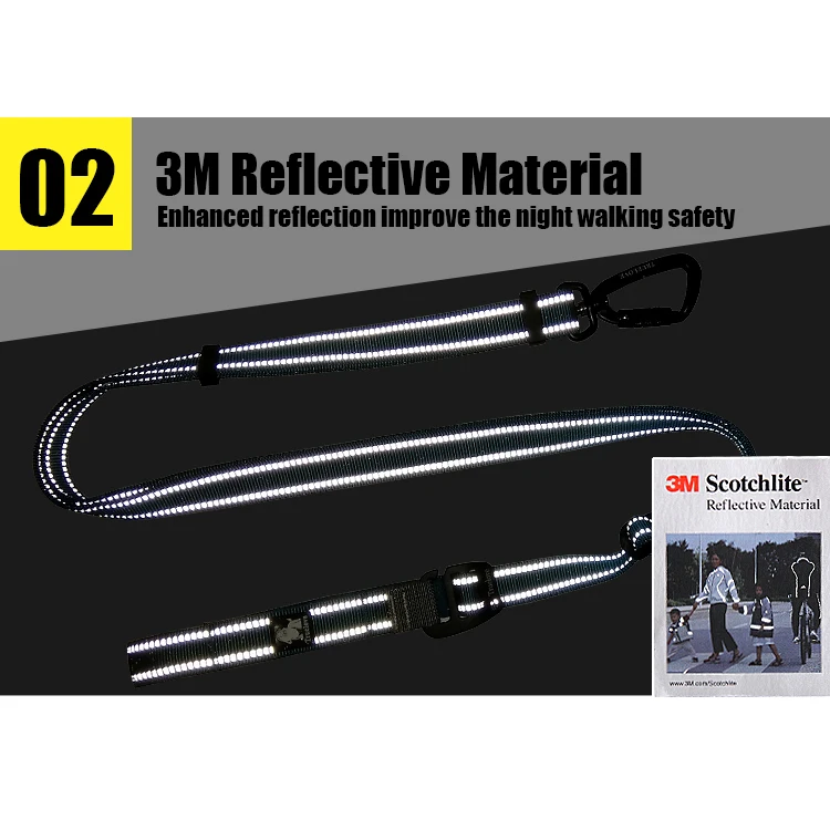 Los reflectores de 2,3 M tejidos directamente en la correa de ambos lados mejoran la visibilidad en la oscuridad.