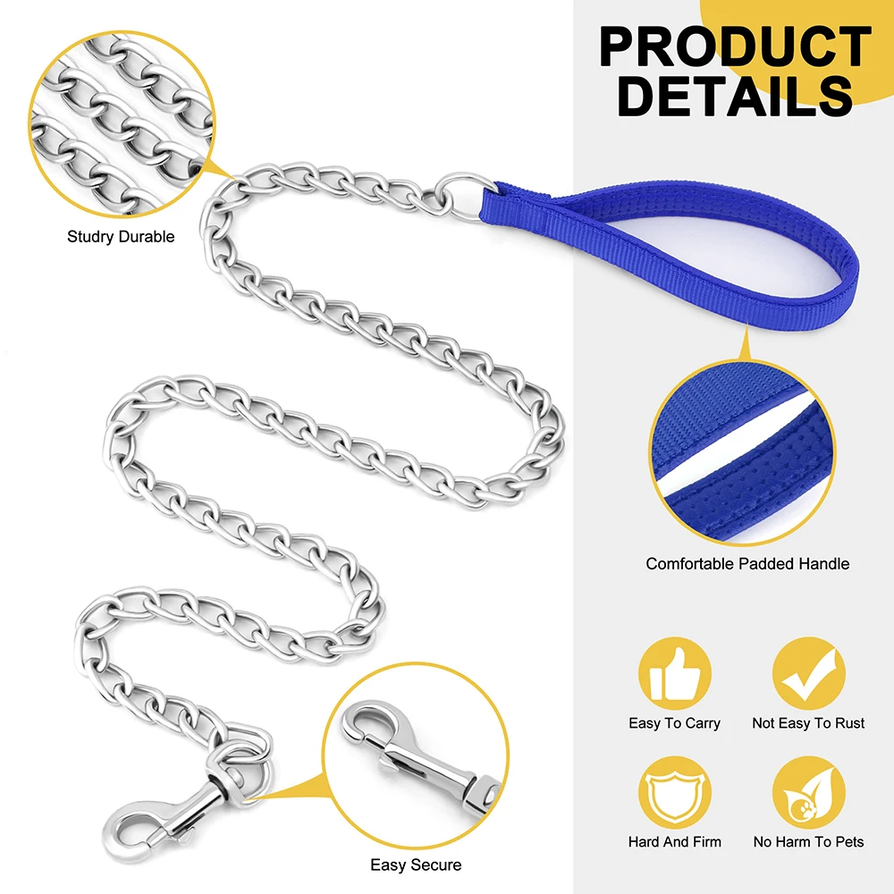 Correa de Metal con mango de nailon para perro, cadena de acero inoxidable para entrenamiento de mascotas, duradera, medianos y grandes para perros, Pitbull
