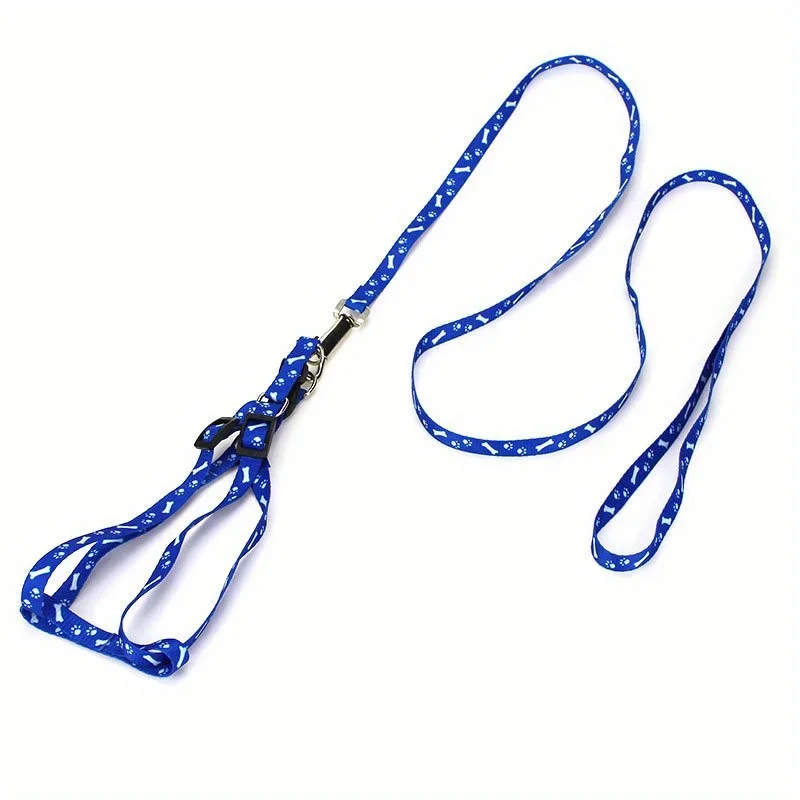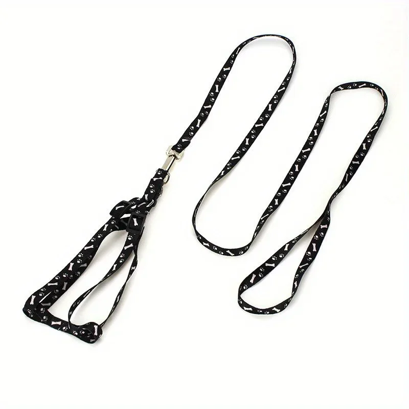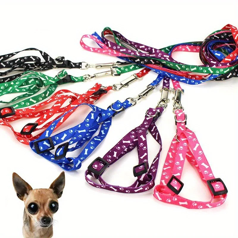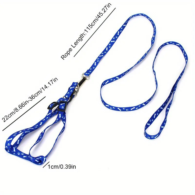 Conjunto de arnés y correa para mascotas con estampado de poliéster: chaleco reflectante duradero con 360° Gancho de aleación para perros y gatos pequeños