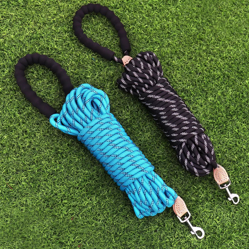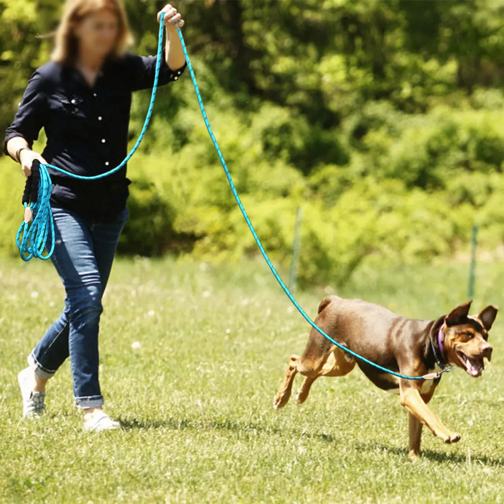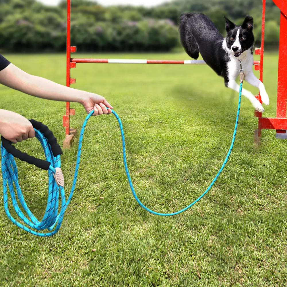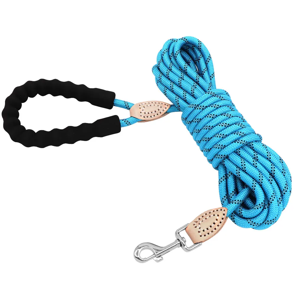 Nombre: Correa de nailon larga y duradera para perros, 3M, 15M, mango suave reflectante, cuerda para perros, correa para perros pequeños, medianos y grandes, correa azul para caminar para cachorros