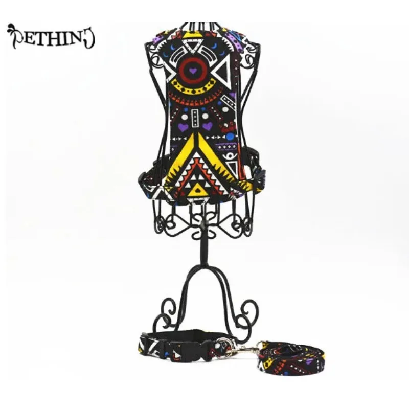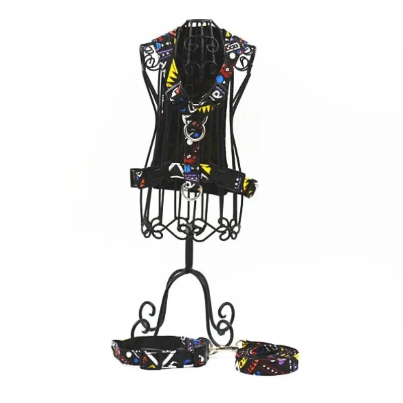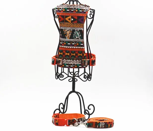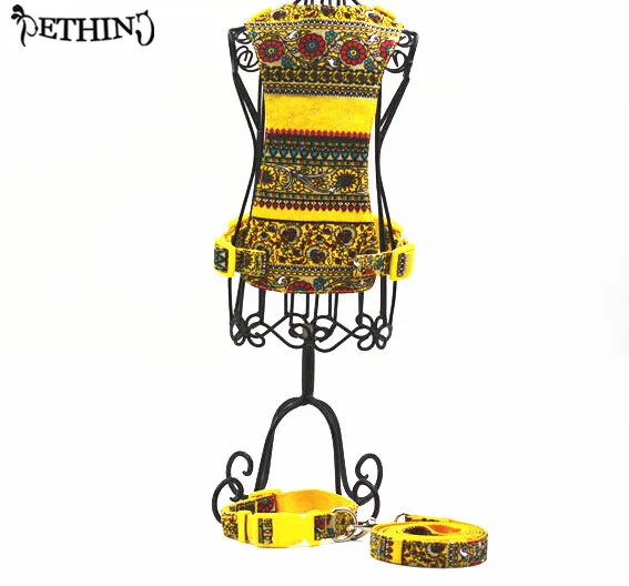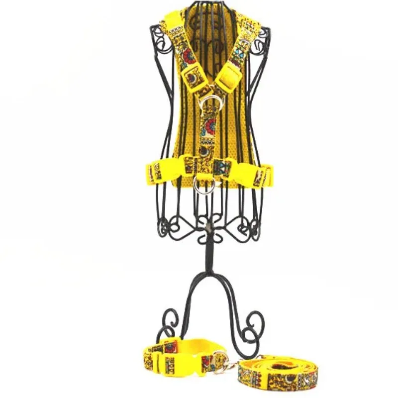 Correa de nailon para perro de estilo bohemio + collar + arnés S L suave y transpirable cuatro colores arnés para perro correa y collar para perro mascota
