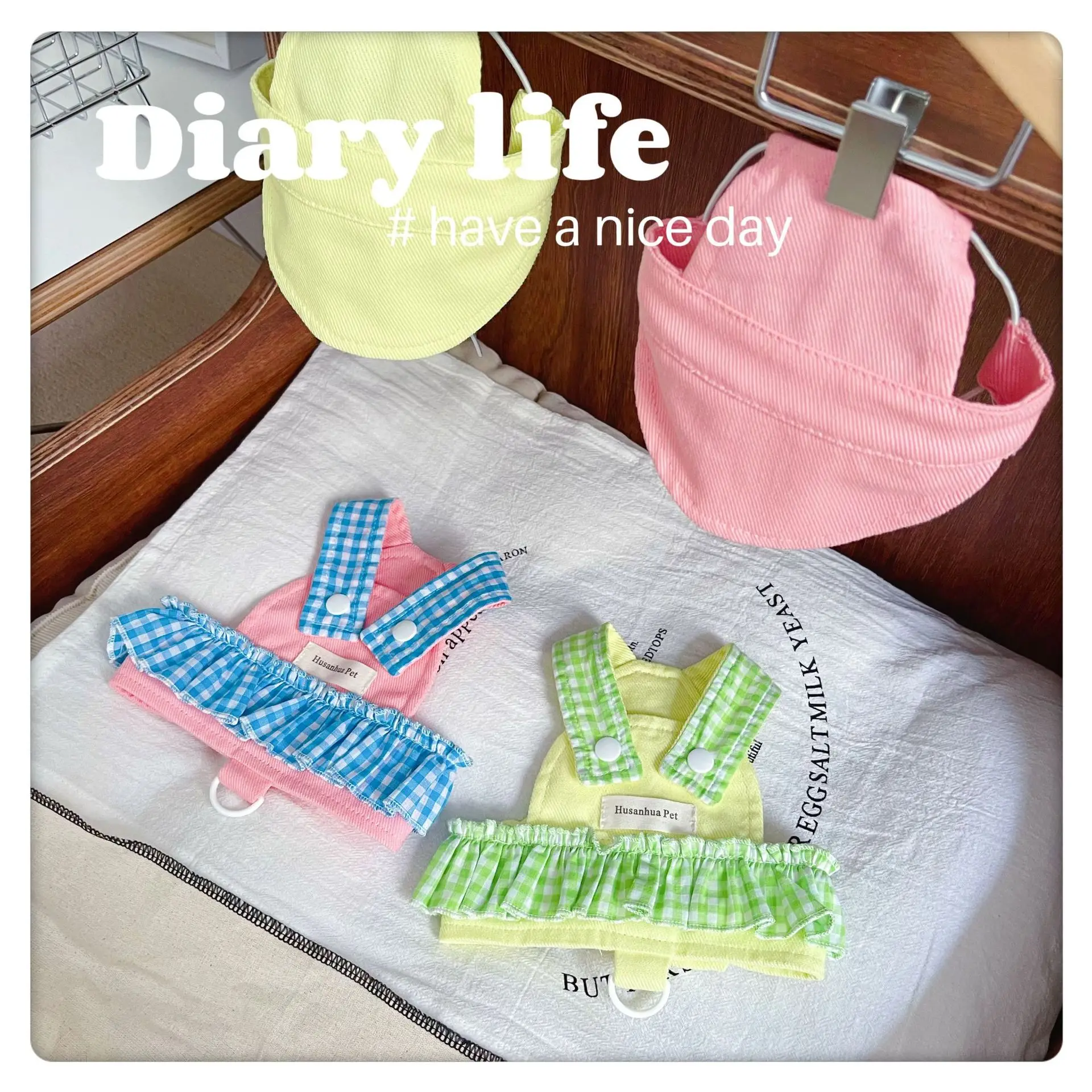 Correa para el pecho de Color con entramado para mascotas, bonito sombrero para el sol, ropa para perros y gatos, correa para el pecho, ropa de tracción, falda con correa para perros pequeños de peluche