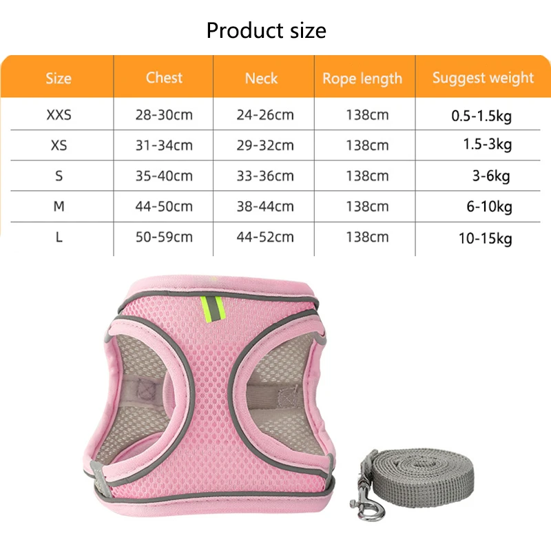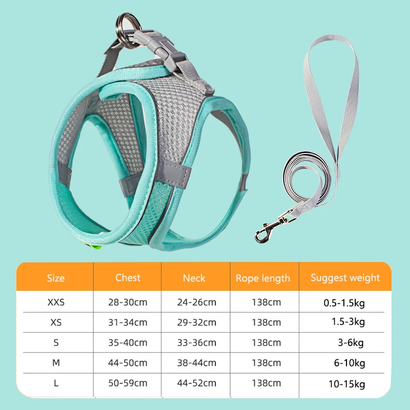 Correa para el pecho estilo chaleco para gato, correa transpirable reflectante para perro, correa para caminar para perros pequeños y medianos, suministros para mascotas